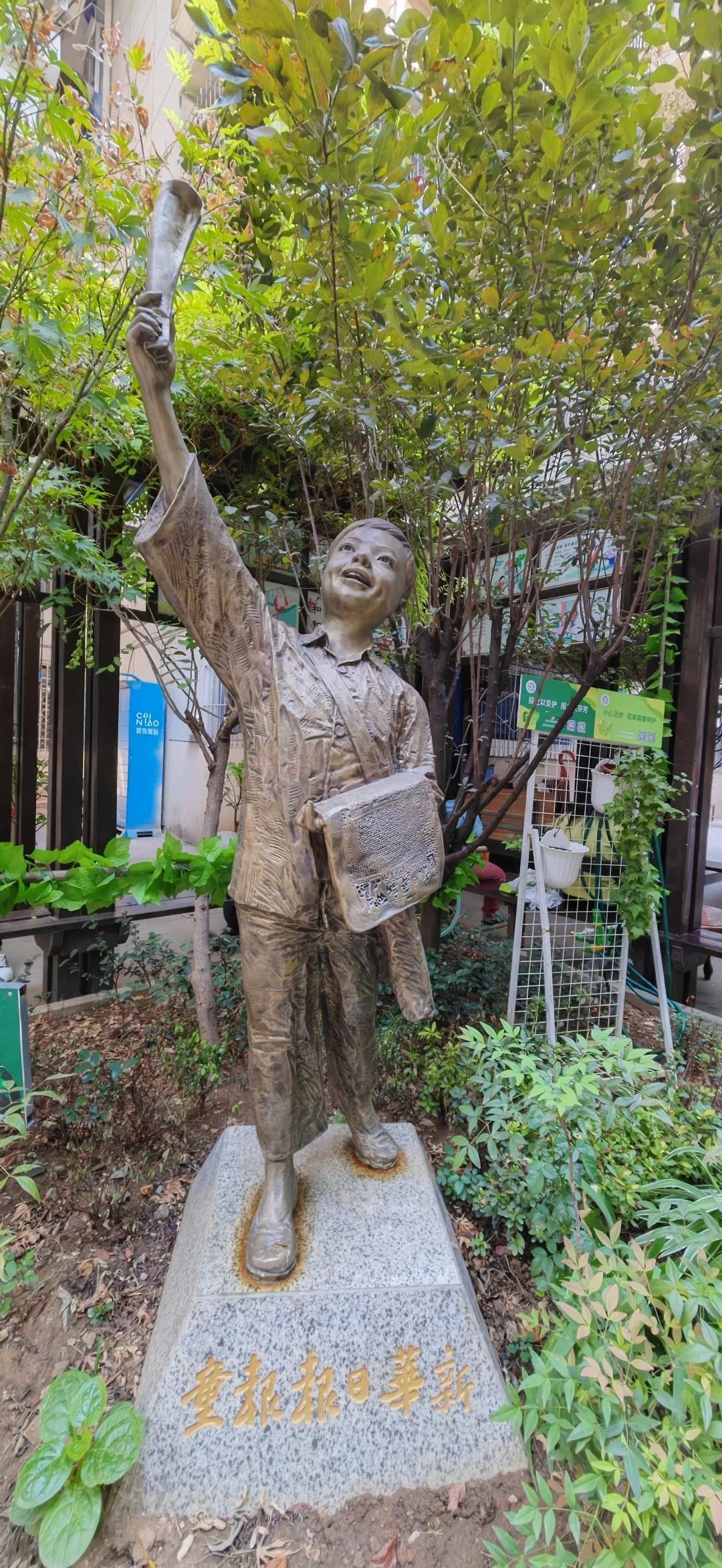 春夏花开时,广场四周生机勃勃,居民们开玩笑说:“我们这好看得像个景点,再有人来参观‘小报童’可就要收费了。”