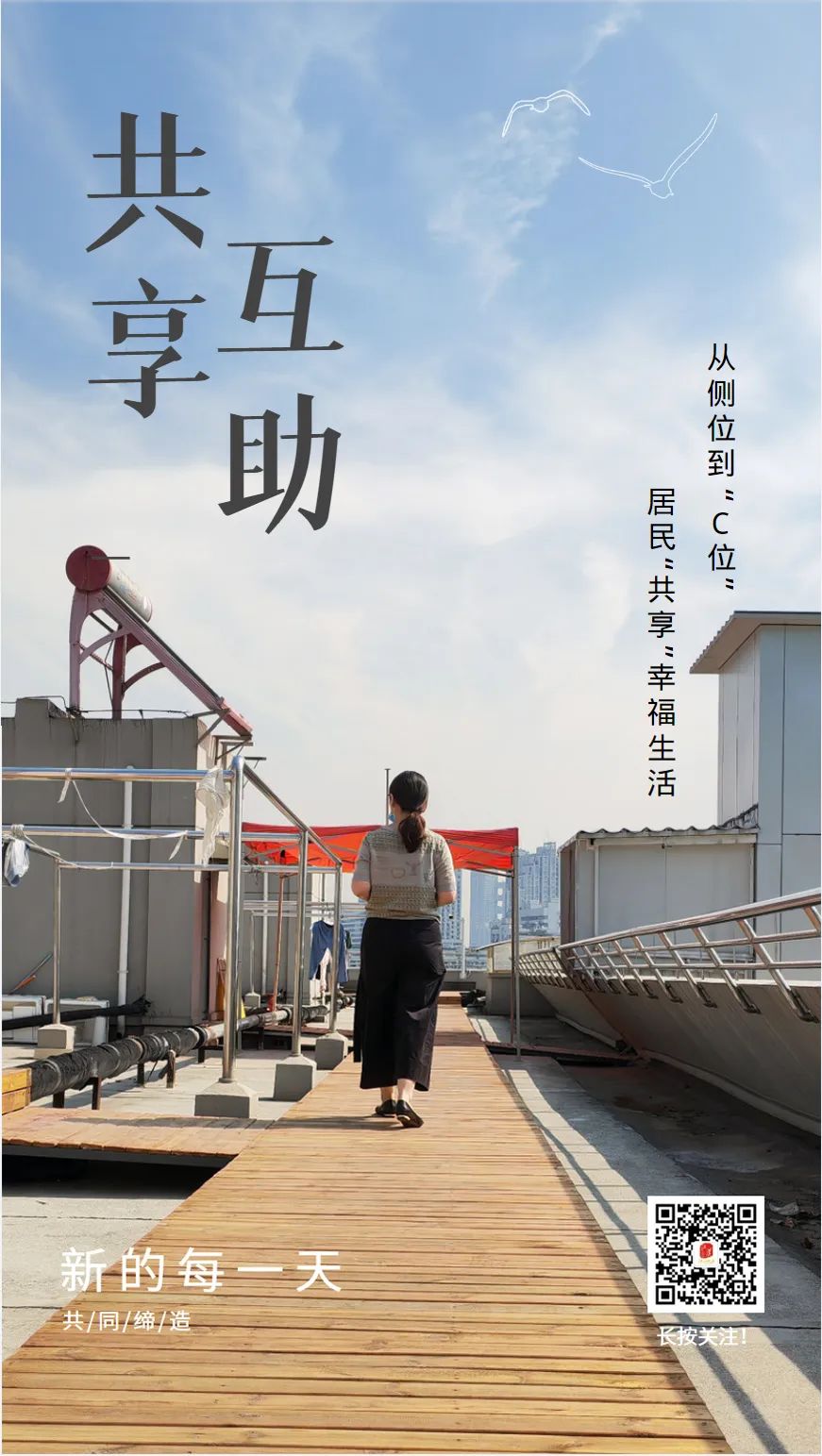 收集整理居民意见,社区立马组织人员对楼顶通行通道进行规划,利用惠民资金铺设木质栈道,其后邀请小区物业与喜爱园艺种植的居民一同美化顶楼,让这方公共空间成为大家喜爱的“空中花园”。