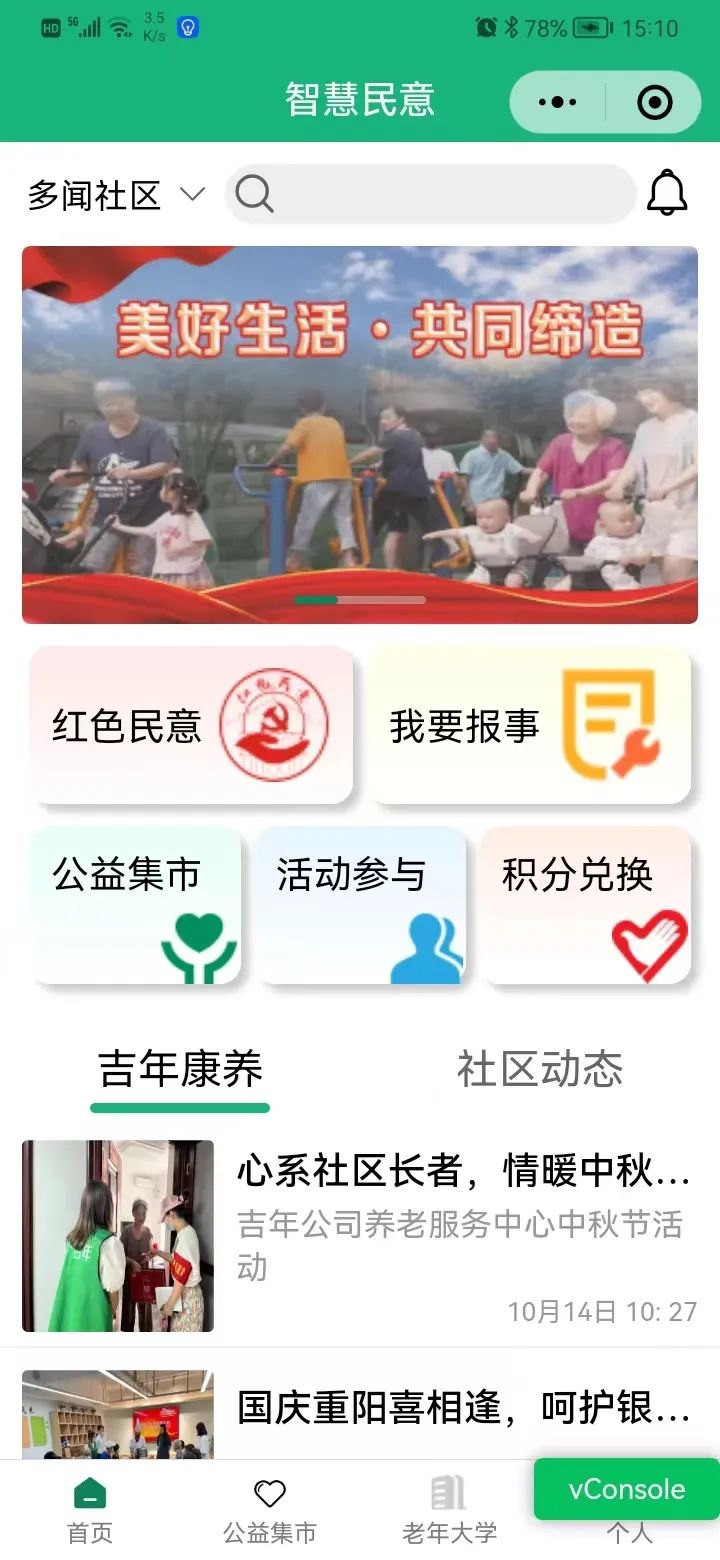 在小程序上,居民报事多方资源集合解决,居民点单-平台派单-社会资源领单-居民评单-社区党委考核,“闭环治理”让居民无忧;而较为完善的志愿者积分、服务兑换体系又引导着更多居民把社区当“家”,激励着家人间互帮互助。现在小程序2.0版正在加紧研发中,它是社会企业、社区、社会组织出谋、共建的成果,也将成为多闻社区共同缔造美好环境和幸福生活的重要平台和载体。