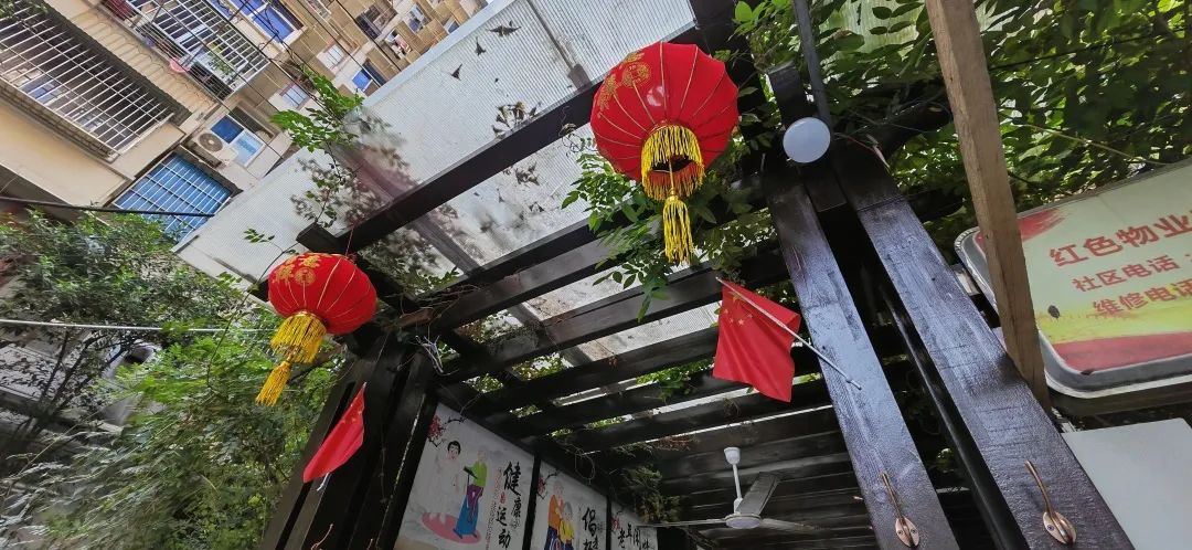 70多岁的朱师傅在维善小区及其附近住了20余年,一点点看着小区从新变旧再焕新。为人热情的他主动接过装点绿色驿站的活,中秋挂灯笼、国庆挂红旗,他还找来一长串小彩灯缠绕在旁边的矮树上。
