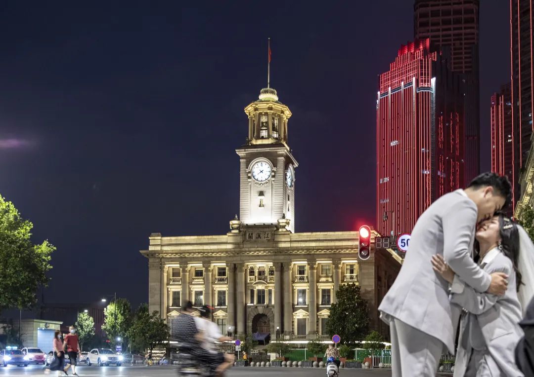 如今,江汉关大楼的历史气息逐渐褪去,电子科技的普及,让报时这一功能似乎失去了用武之地,江汉关顺应着发展的需求,成为了年轻人拍照取景的打卡地。