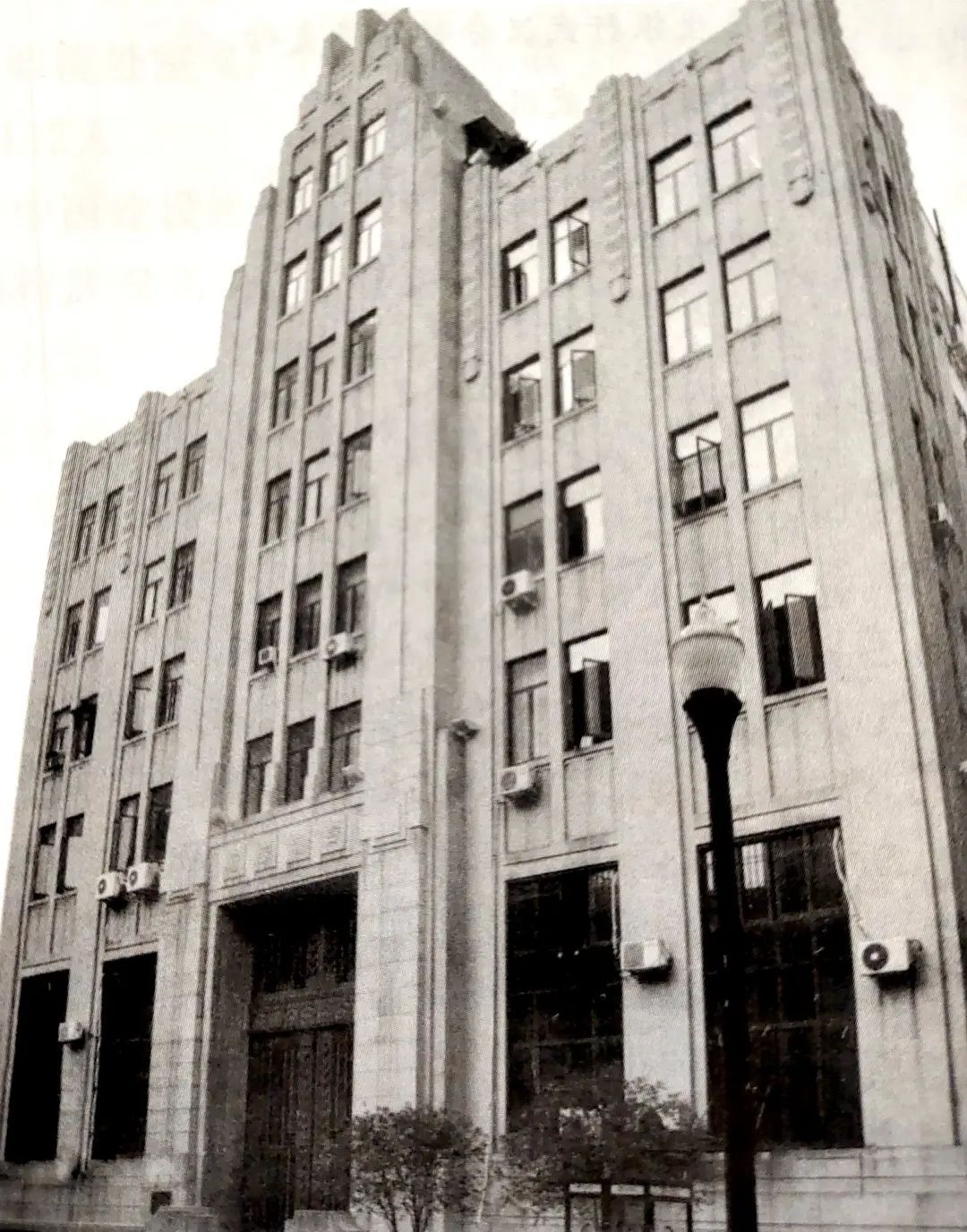 四明银行汉口分行则成立于1919年,到20世纪30年代在江汉路购买了格非堂原址,1934年请来当时的先锋建筑师卢镛标设计新银行大楼,汉协盛营造厂施工,于1936年竣工。这栋大楼是卢镛标的成名之作,也是中国设计师在汉口设计的第一座钢混结构建筑。四明银行汉口分行采用当时最新潮的折线形现代主义风格,地上5层,局部7层,地下1层,它39.01米的高度为当时银行大楼之最,被誉为中国人的“争气楼”。