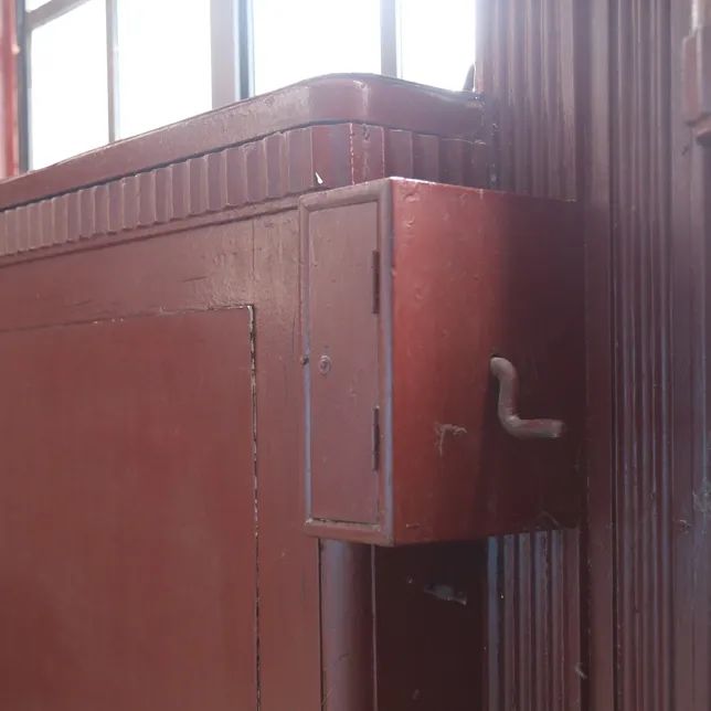 待到上了三楼,便发现大楼内层风格与外立面的冷肃有些不同,大片白墙红漆的配色,简约中透着秀美。老门轴、旧插销、细长的红木地板、同色系的大门与点缀其上的金属把手,还有机械式窗帘升降盒,这座本土化的摩登建筑外表新潮又内藏了许多中国古典美学和机巧,它们奇妙地糅杂在一起,让这栋大楼历经百年依然处处有趣、生机勃勃。