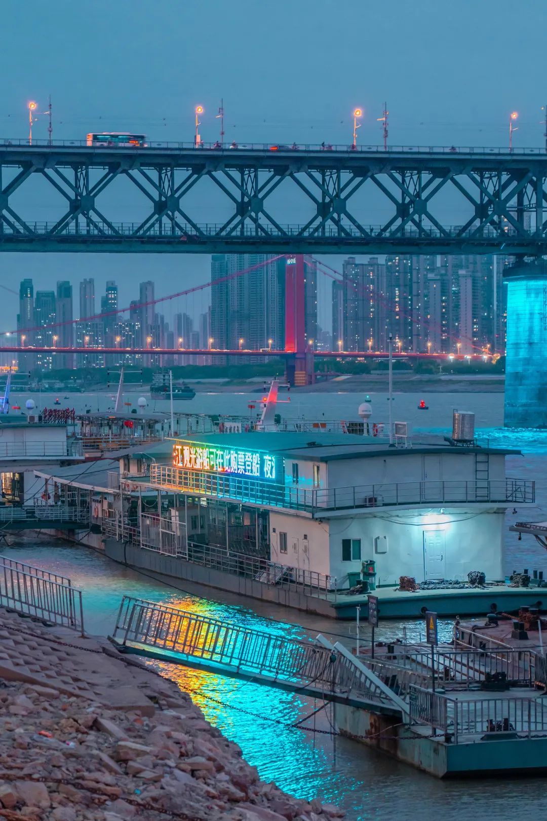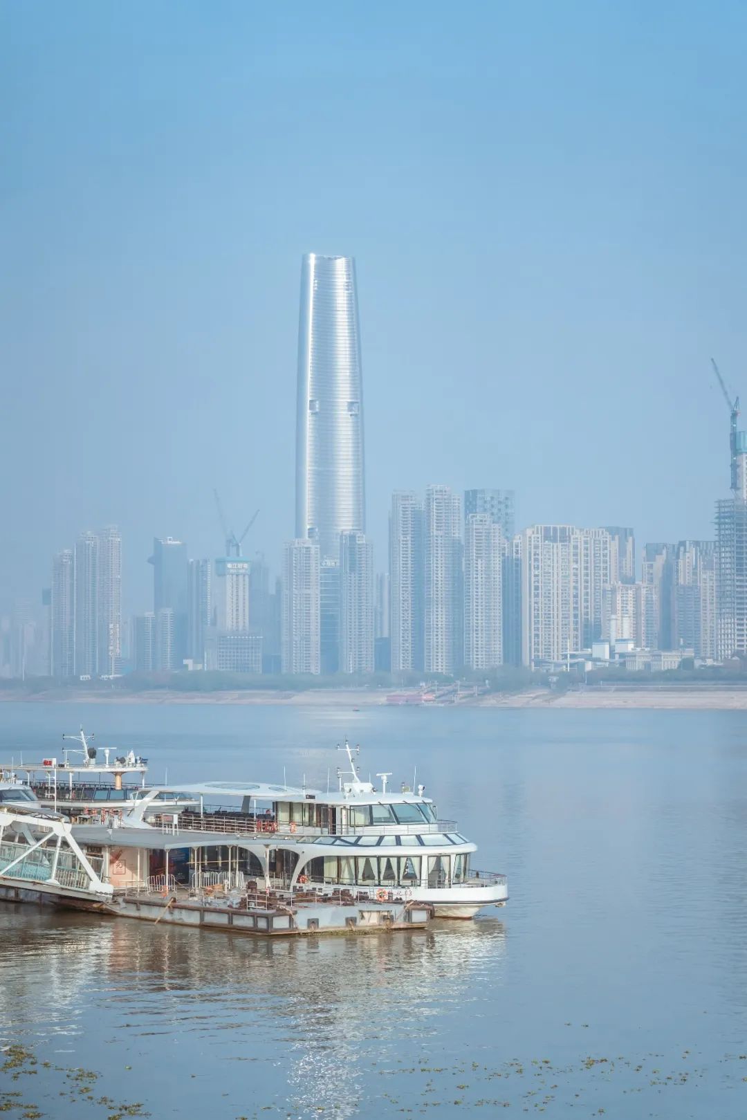 少了三分水汽蒸腾的氤氲,一番洗练清透的沿江风景带江城走进冬日的氛围里。或许不如夏日梦幻,但反而多出额外的趣味。