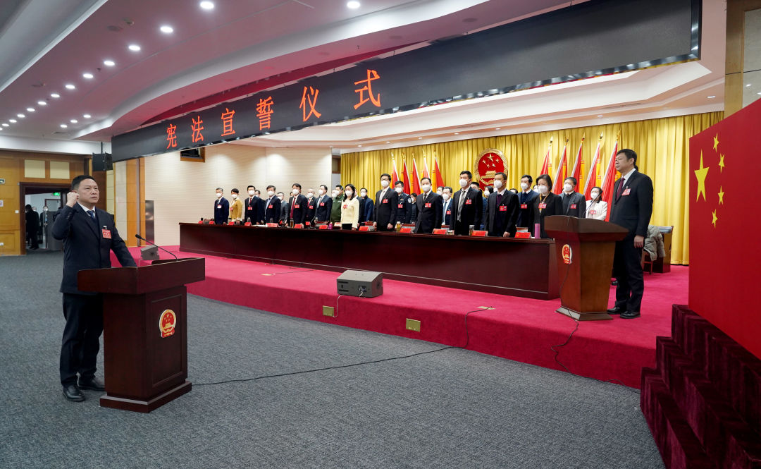 会后,在李湛主持下,新当选的江汉区监察委员会主任毕盛在大会主会场进行了宪法宣誓,全体参会人员共同见证了宣誓仪式。