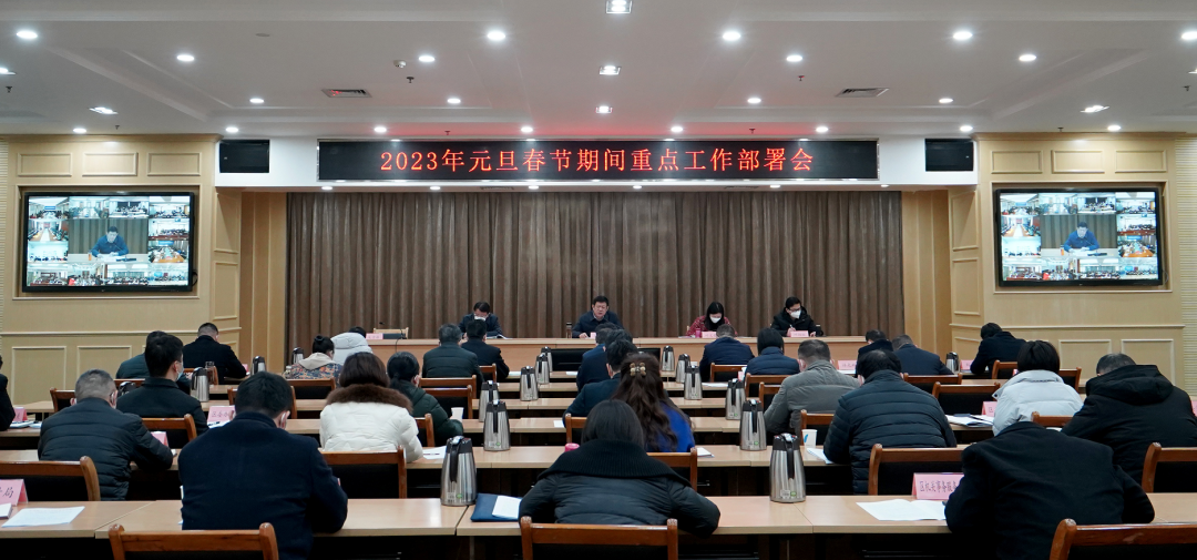 为做好元旦春节期间疫情防控、平安稳定、安全生产等重点工作,确保全区疫情防控措施调整转段平稳有序,社会大局平安稳定,人民群众平安祥和过节,12月30日,江汉区召开2023年元旦节前重点工作部署会。区委书记李湛出席会议并讲话,区长叶文静主持会议。区人大常委会主任何裕生、区政协主席叶劲松参加会议。