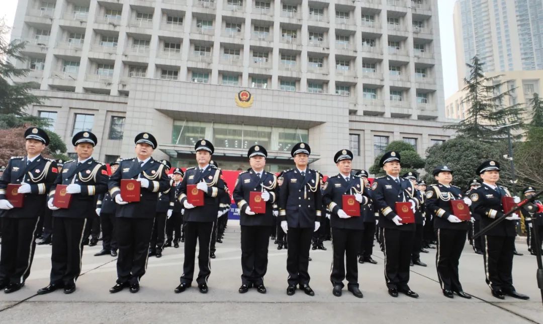 1月10日,是第三个中国人民警察节,江汉区公安分局隆重举行庆祝2023年中国人民警察节重温入警誓词暨警监授衔仪式。当日上午,区委常委、分局局长张光敏,及局党委成员、各室队所站主要负责人、民警代表共200人参加活动。