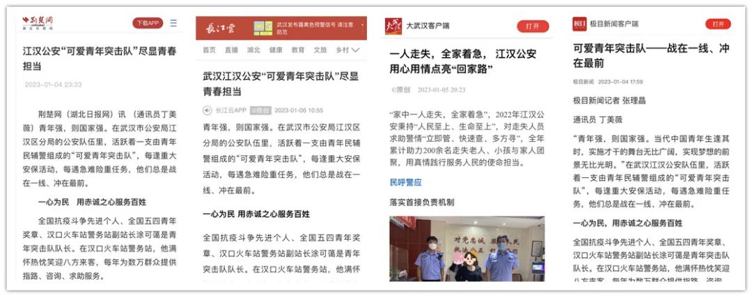 并策划宣传“致敬人民警察”系列报道,短视频、图文同步在新媒体、传统媒体平台推送,全面回顾和系统梳理了2022年江汉公安工作成绩亮点,描绘了江汉公安在工作中的坚守与担当,守护人民群众的感人事迹。