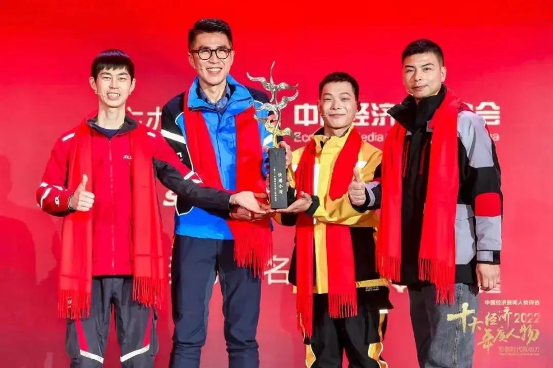 1月6日,由中国经济传媒协会主办的“中国梦杯•中国经济新闻人物——2022十大经济年度人物”颁奖典礼在北京举办。京东物流小哥栾玉帅、顺丰小哥张裕、美团小哥刘壮、饿了么小哥于夫四人,共同当选“2022中国经济年度人物”特别奖。