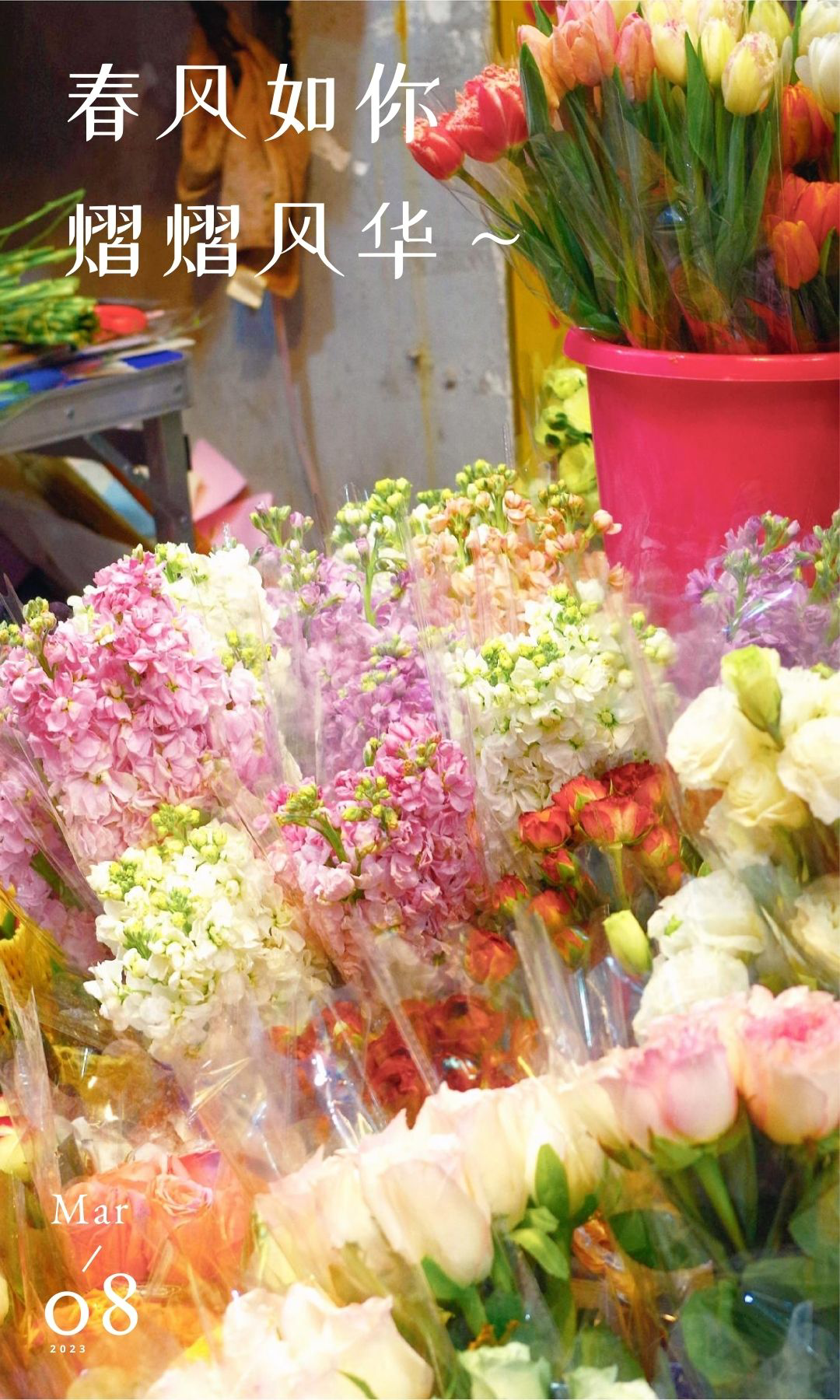 在郁金香、玫瑰、洋牡丹的海洋里