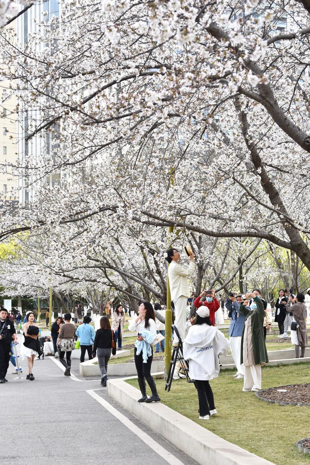 这如霰的花雾,自然也吸引了人群纷至沓来。寻花而来的人们构成了早春的另一番风景。