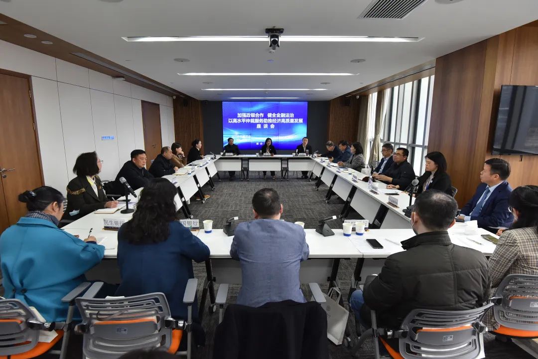 随后开展的“加强政银合作,健全金融法治,以高水平仲裁服务助推经济高质量发展”座谈会上,市、区领导、相关区局以及5家银行金融机构代表、2家律师事务所代表,就如何规范使用仲裁条款、如何防范金融风险化解金融纠纷、如何优化服务营商环境等问题进行交流探讨。