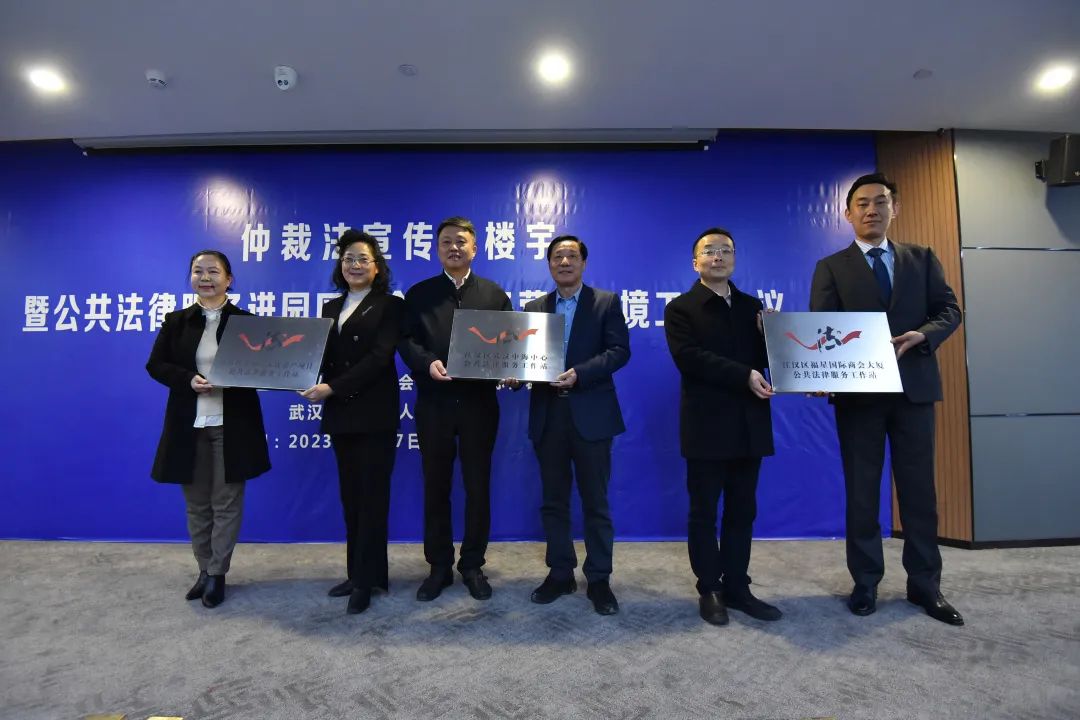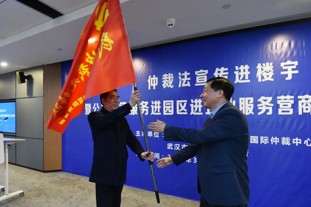 主会场,省、市、区政府部门相关负责人、律所代表、企业代表共话法治营商环境新发展,现场为福星国际商会大厦、武汉中海中心、江汉区非物质文化遗产项目等3家新公共法律服务工作站揭牌;向湖北得伟君尚律师事务所等10支公共法律服务先锋队及武汉仲裁先锋队授旗。分会场内也通过专题宣讲、法律咨询等多种形式进行仲裁法宣传。