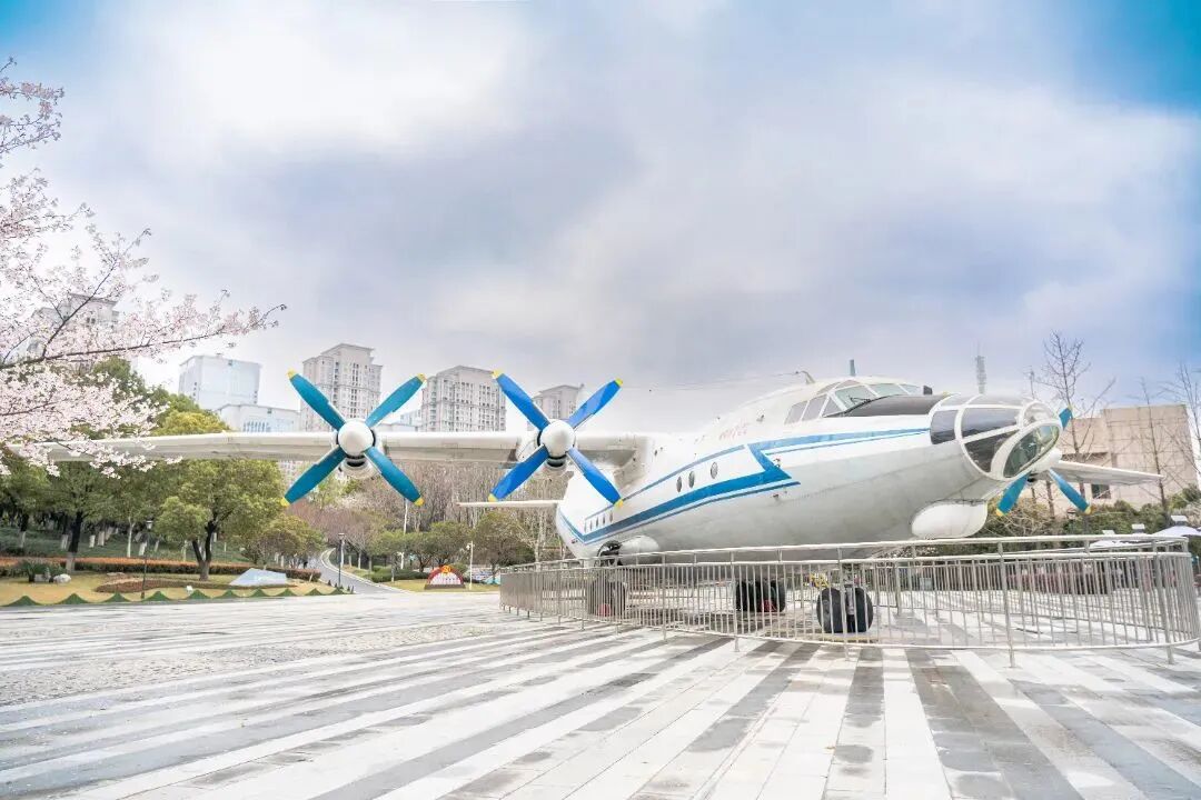 白墙灰瓦,睦邻空间高雅脱俗,东北角广场停泊的“运-8”运输机诉说着时光的悠远……