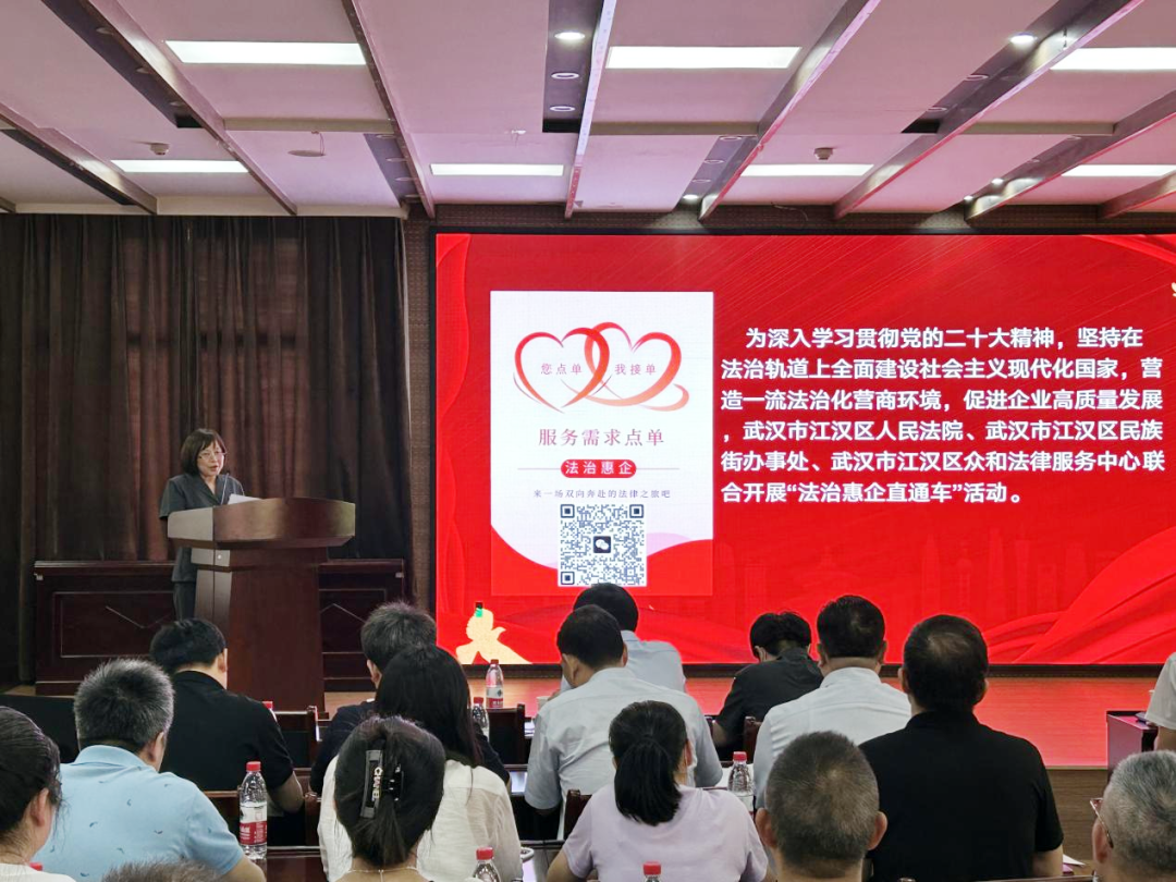 为进一步对标先进城市一流的法治化营商环境,武汉江汉法院联合街道和多个社会组织启动“法治惠企直通车”。