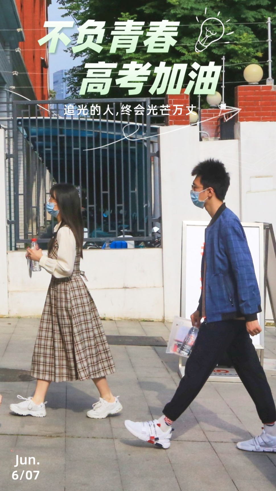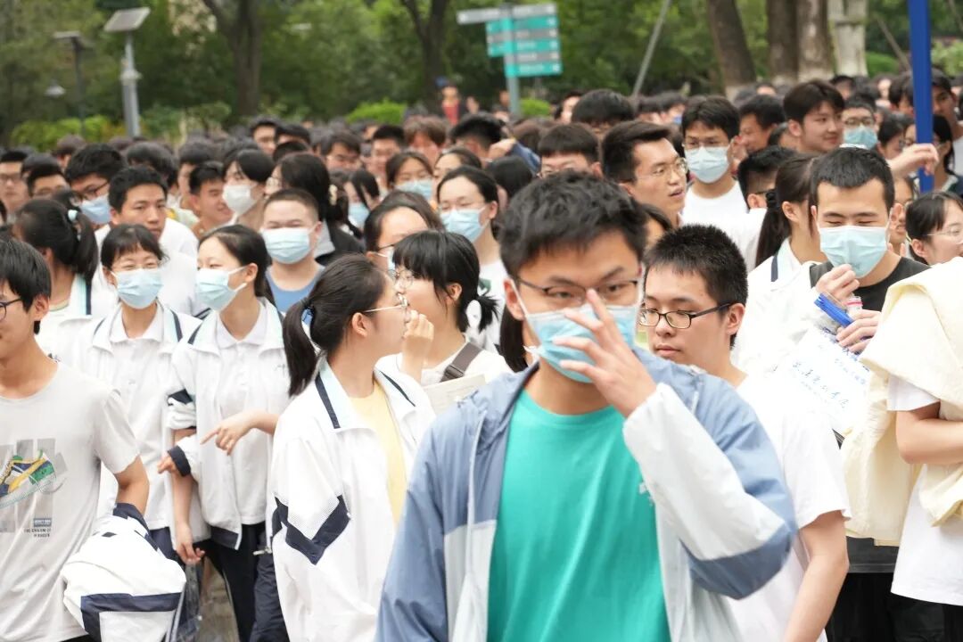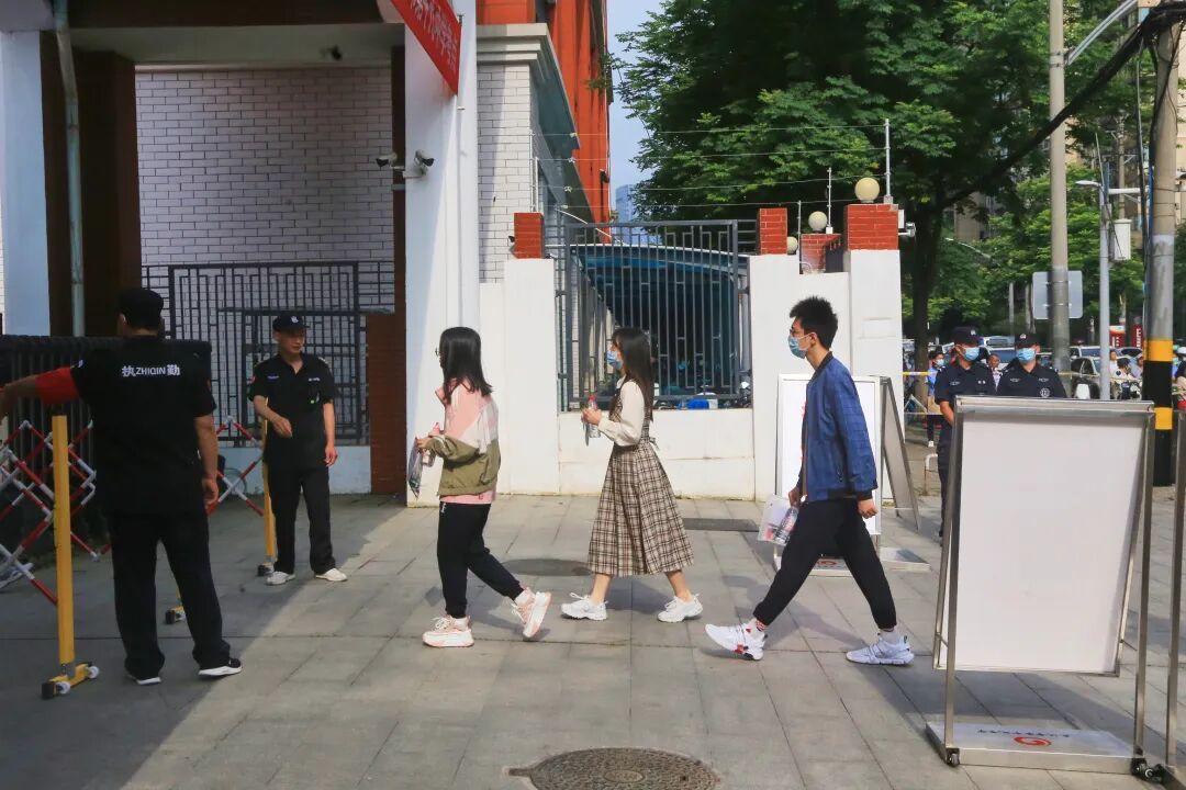 考生们带着老师、家长的暖心叮咛,自信地走进考点。加油,少年们!