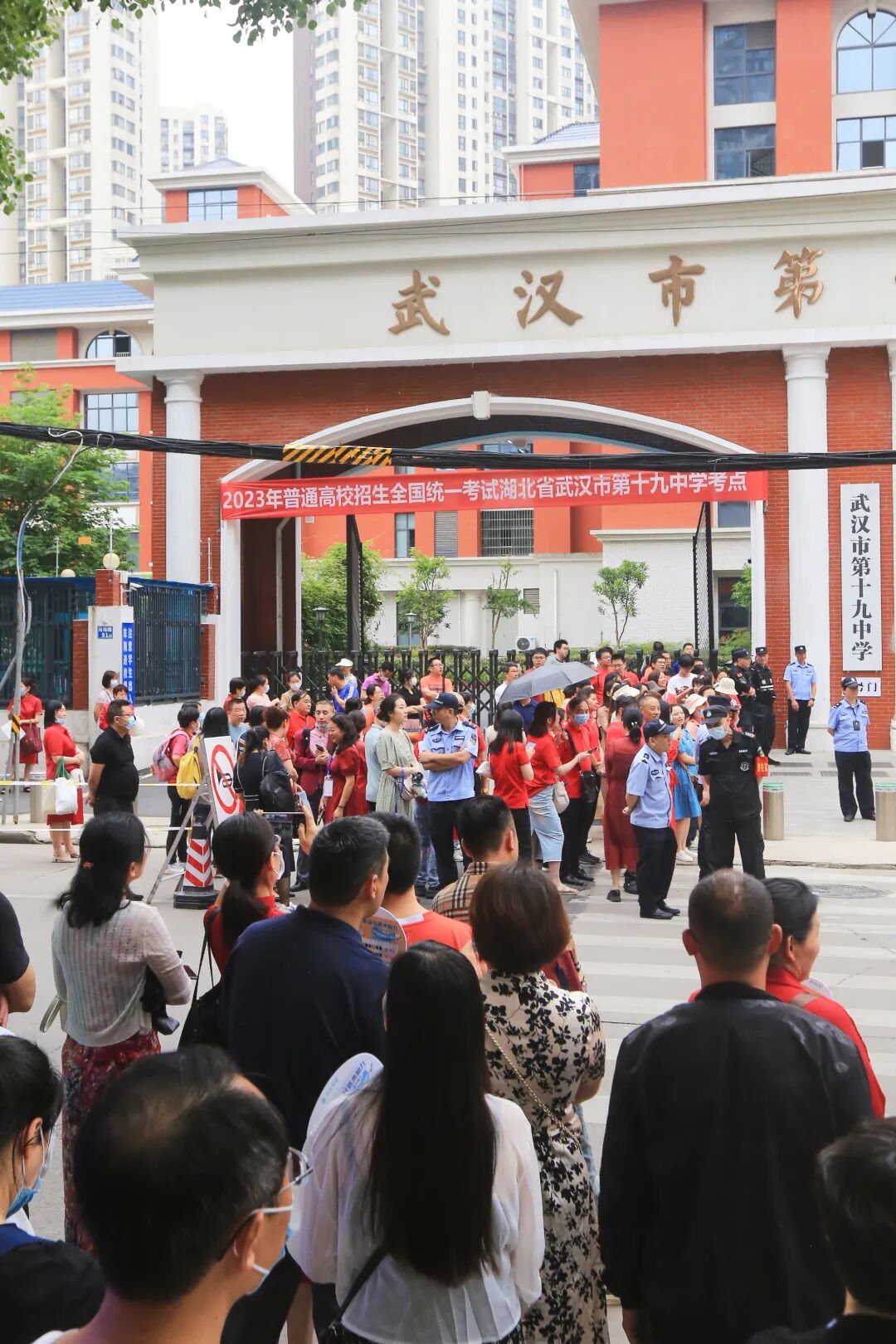 第十九中学考点,有公安、交警等考生们的“万能守护者”陪伴,令人倍感安心。