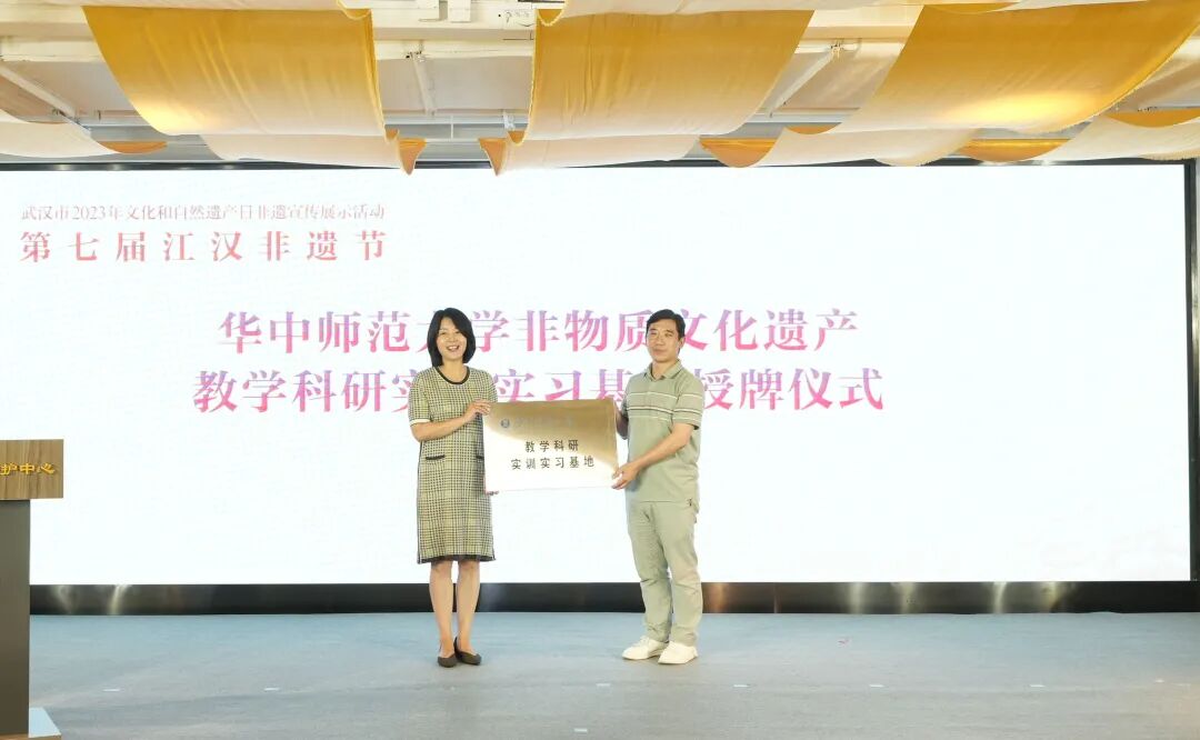 活动当天,华中师范大学教学科研实训实习基地在江汉区非遗保护中心正式挂牌。