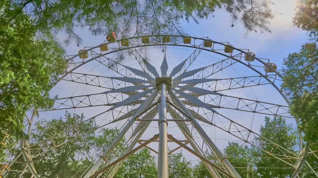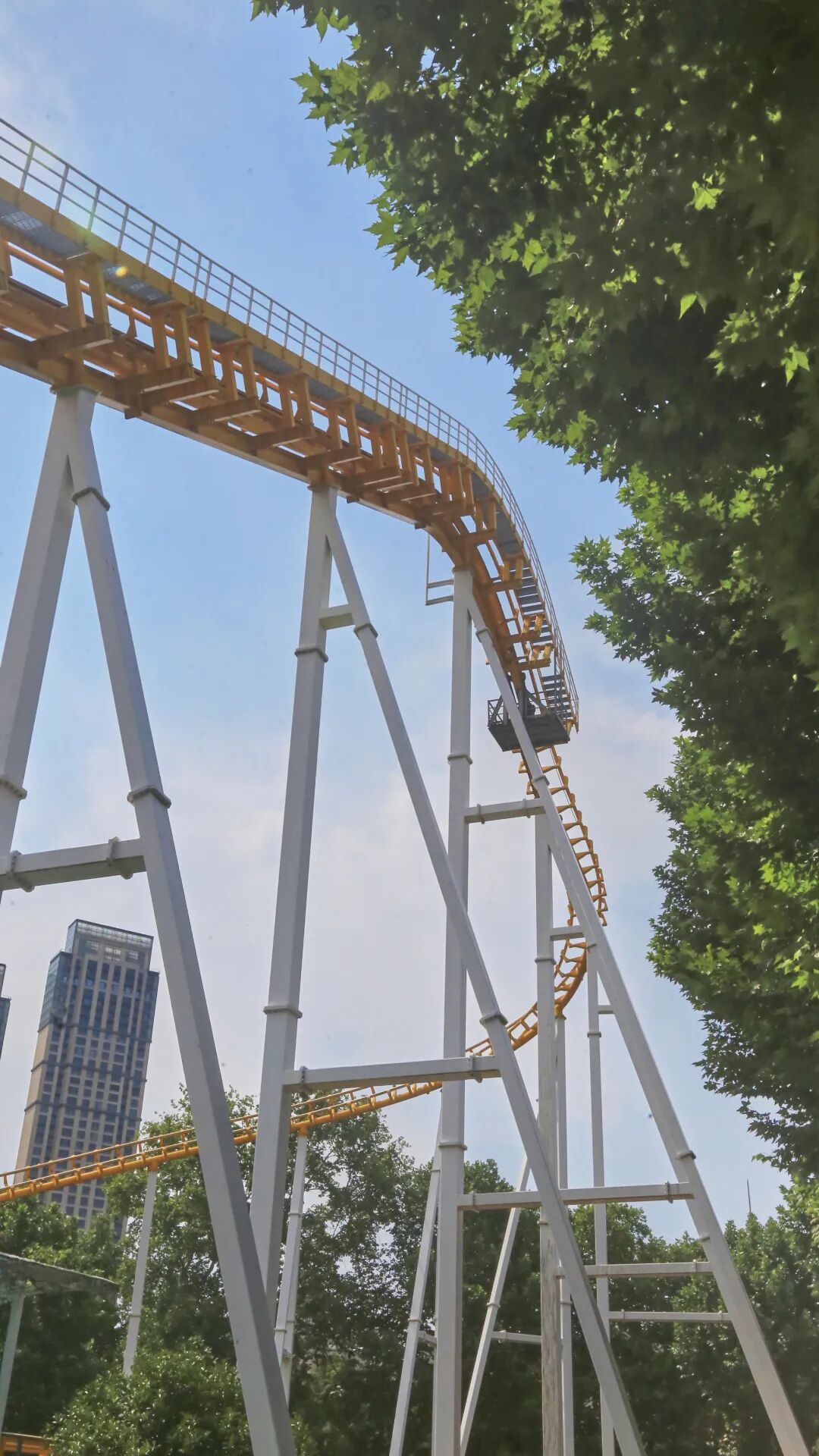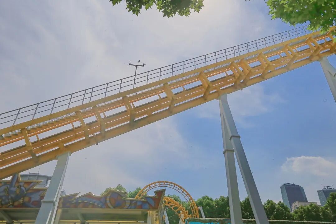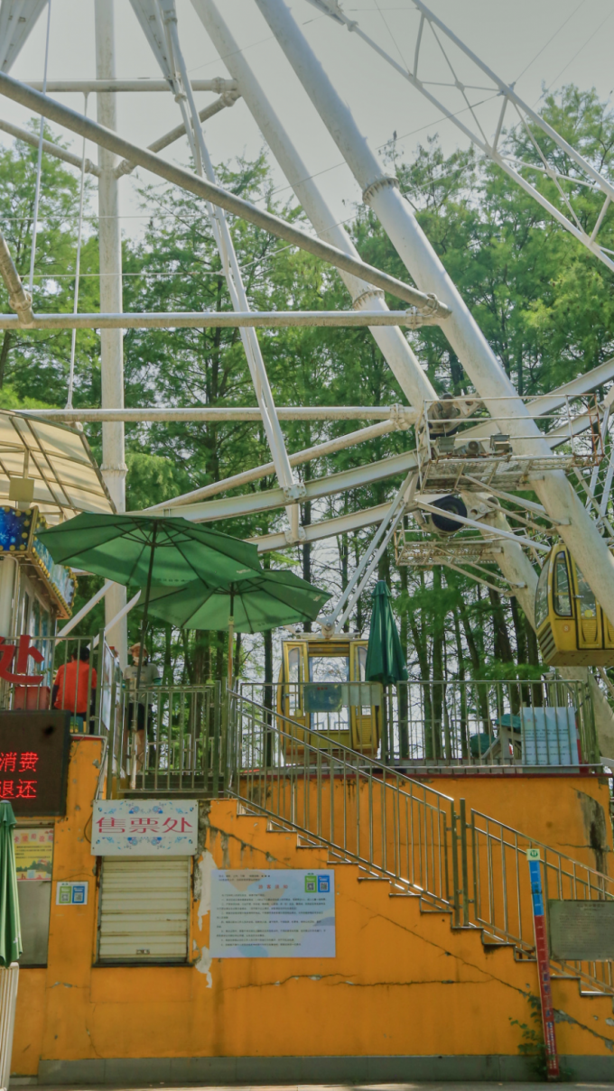 中山公园里最扎眼的游乐项目——摩天轮与过山车,都被粉刷成了淡淡的黄色。