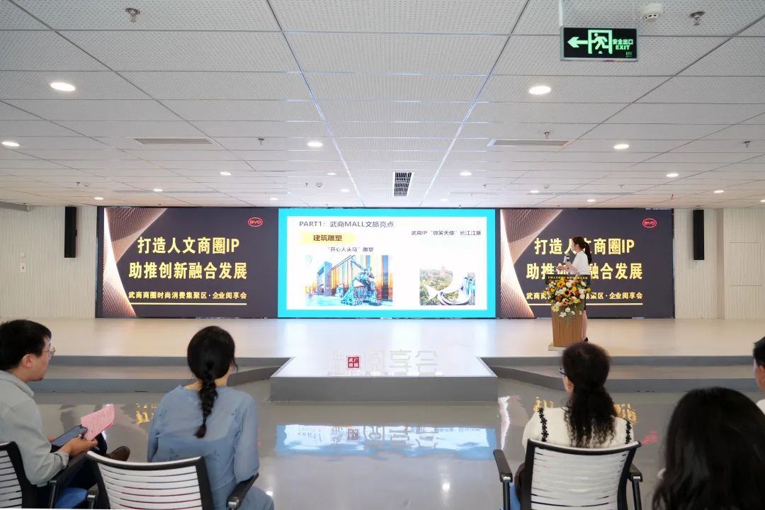近年来,“文旅+”产业融合发展趋势明显,武商商圈作为全市定位的时尚消费集聚区,有着得天独厚的商业资源禀赋与历史文化底蕴。这里汇集国际高端时尚消费品牌,也有着全国百家历史名园中山公园、湖北地质博物馆、武汉外国语学校等人文科教场所。当天进行的企业阅享会上,与会代表从实际出发,围绕“打造人文商圈IP 助推创新融合发展”主题,分享自身文商旅融合经验看法。