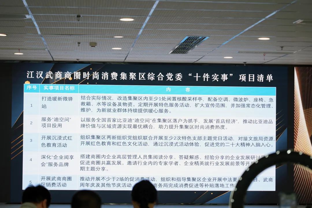 汇集各企事业单位智慧与力量,集聚区综合党委发布“十项实事”项目清单,从打造暖新微驿站关爱新就业群体,到开展商圈促消费活动完成消费促进等补贴落地,件件都是集聚区内企业、居民关心的事儿。