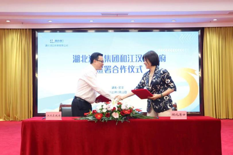 活动现场,江汉区政府与湖北港口集团签署战略合作协议,武汉金融街管理委员会与湖北港口资本有限公司签署合作协议,交通银行湖北省分行与港口资本公司签订10亿元授信意向协议。协议的签署进一步加深了江汉区与湖北港口集团的合作,推动各方在资源共享、业务开展等方面实现联合发展、携手共赢。
