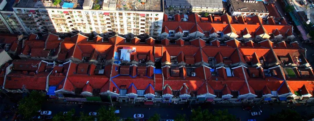 从高空俯瞰,联保里的红色传统尖屋顶及井然有序的布局,让人感叹传统里份建筑的魅力。1926年国共合作期间,董必武秘密居住在联保里4号二楼,以国民党中央驻鄂代表的身份指导筹建国民党湖北省党部和汉口特别市党部,组织领导武汉各界配合北伐军挺进湖北。直到新中国成立前,联保里由于地处城区中心,人流量大,常被特工们作为接头点,“上演”了一出出惊心动魄的“谍战戏”。