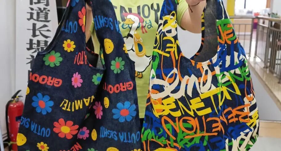 前段时间,社区内经营布匹批发生意的商户向社区捐赠了些不同面料的布,正当工作人员为如何使用发愁时,几名身怀缝纫手艺的能人自告奋勇进行改造。面料厚韧性强的缝成手提袋,面料柔软亲肤的做成围巾、坎肩,随后社区将成品加入义卖活动中,果然大受欢迎。社区慈善基金增添了一笔收益,能人们除了收获大家的夸赞,也为自己挣来高额志愿服务积分。