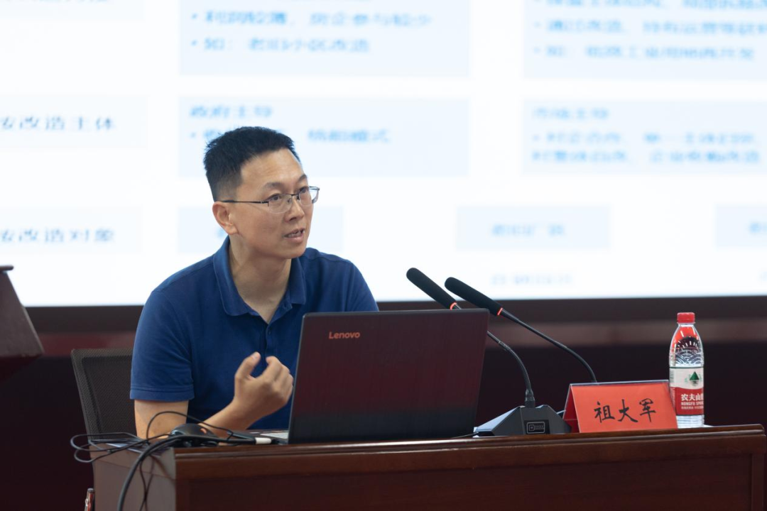 祖大军以《社会资本参与城市更新策略探索》为题,深刻剖析了城市更新的政策现状和实践要点及具体运作案例。从社会福利、商业再发展、城市功能、环保和历史文化保护等方面,强调城市更新中空间、产业、文化和人口等要素的深度融合,在城市更新模式、资金统筹运用、盘活存量资产等方面,指导江汉区城市更新工作拓宽思路、找准赛道、活力焕新。