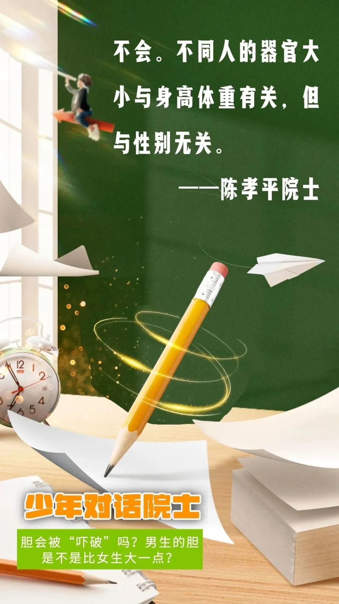 一初学苑九(2)班孙近家表示,“今天看到了新时代科学家精神,更加明确了以后奋斗目标,将以陈院士为榜样,刻苦学习,报考医学专业,为我国实现高水平科技自立自强贡献力量。”