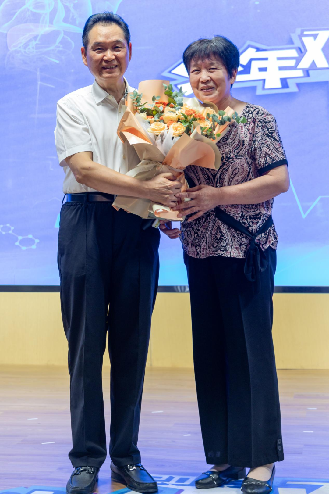 今天,2009年感动中国人物“暴走妈妈”陈玉蓉现身活动。只见她手捧鲜花缓缓走上舞台,向陈孝平院士致敬并表达感谢。