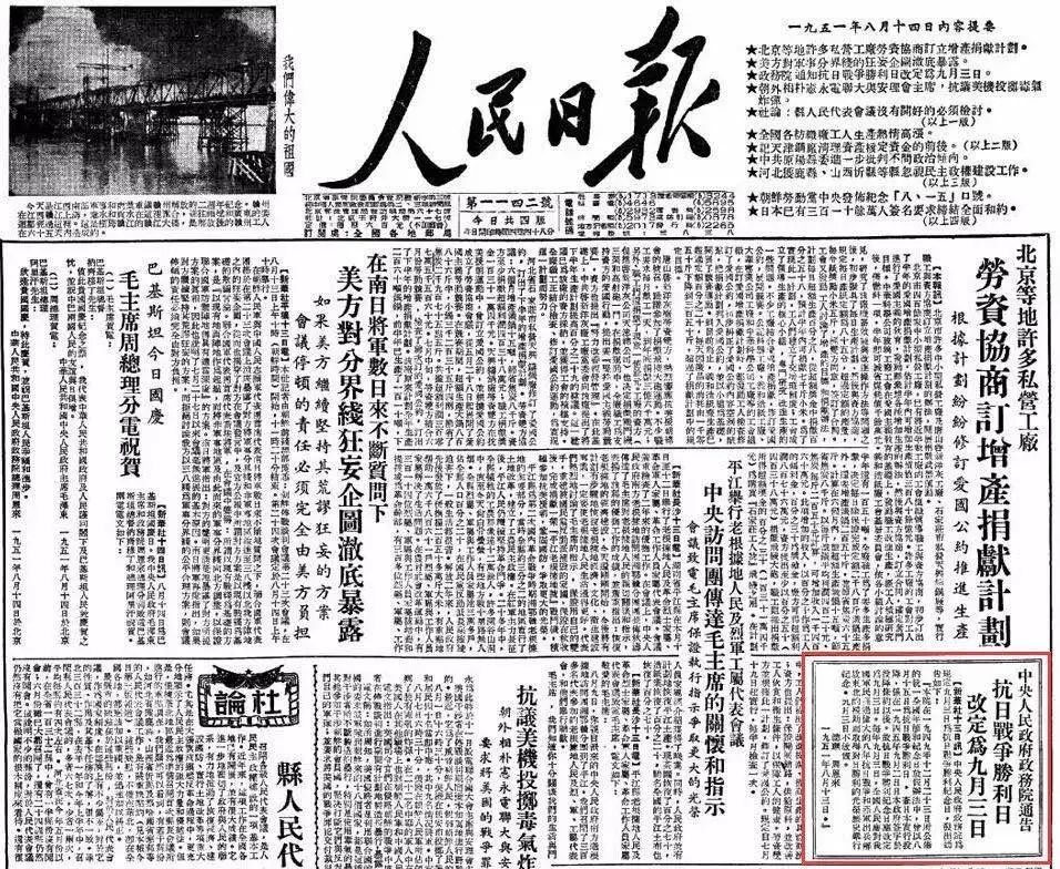 将抗战胜利纪念日定为9月3日。