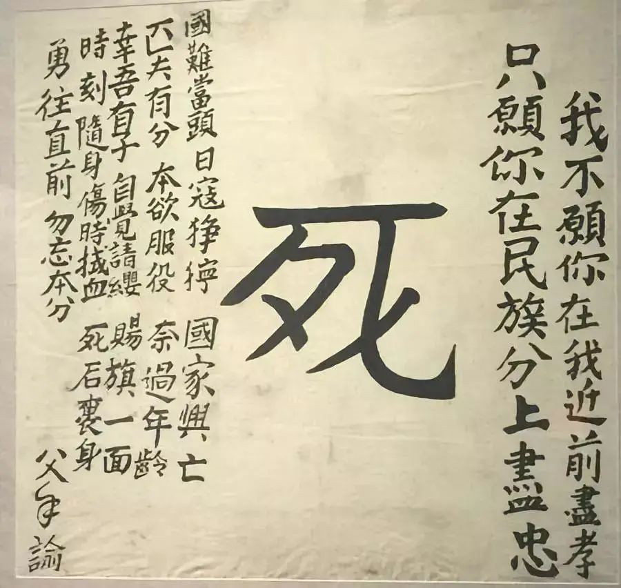一名抗日战士出征前,父亲赠送他的“死字旗”。
