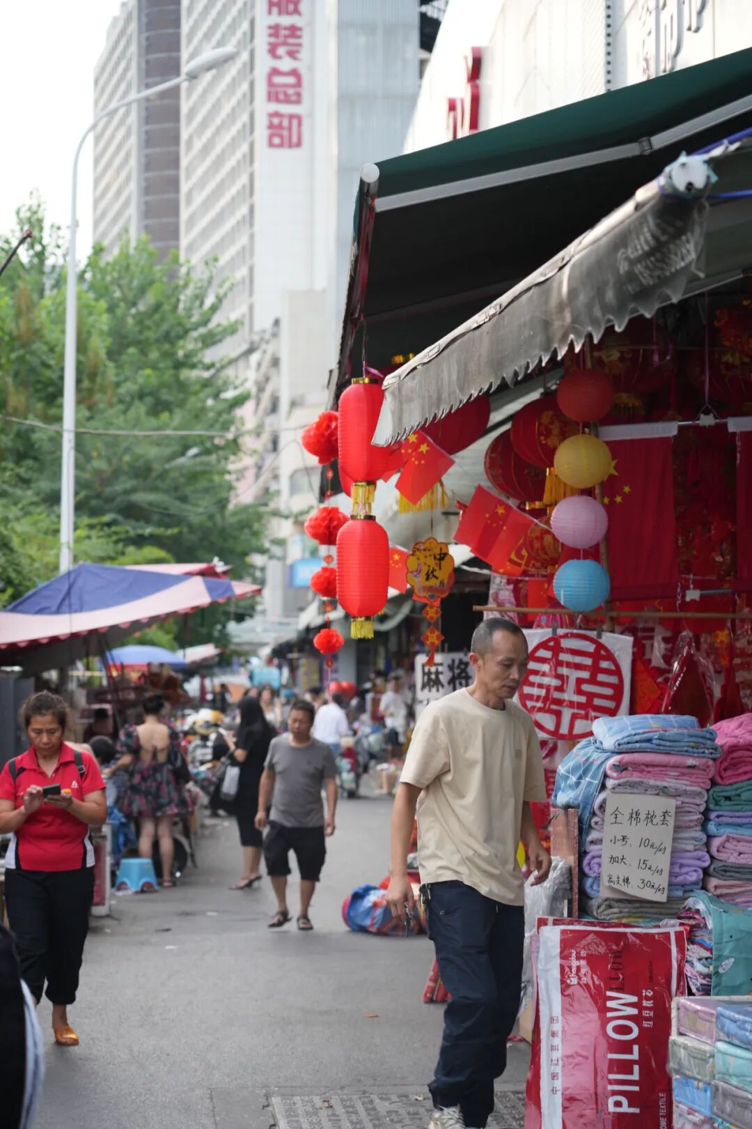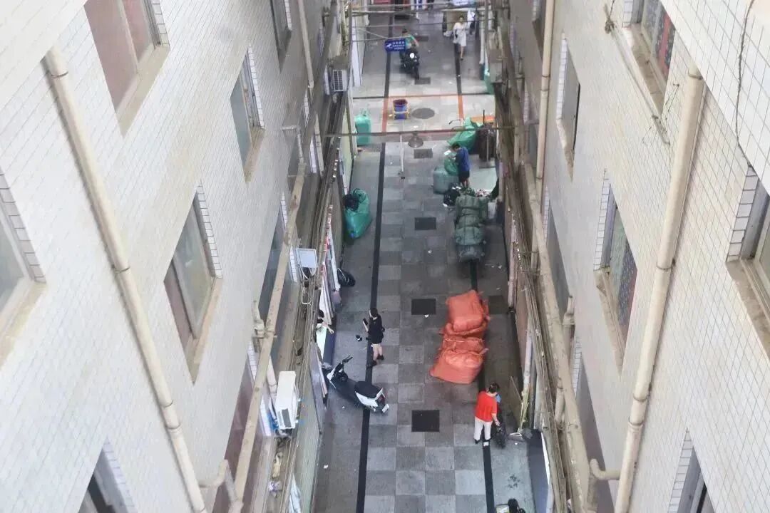 地面上,是多家店铺并立的小商品批发集聚区,人来人往,热闹不停歇;