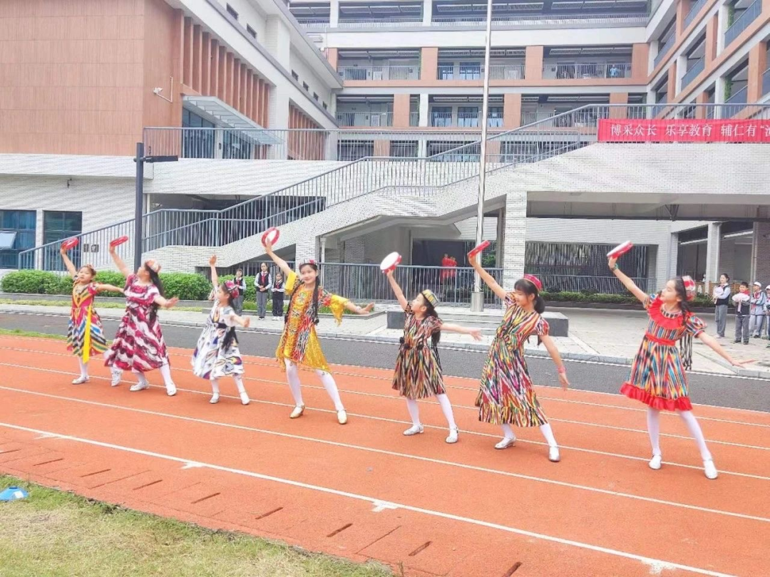 博乐三小学生代表身着维吾尔族服饰,为在场师生献上一支洋溢热情活力的新疆特色舞蹈,随着节奏响起,现场气氛瞬间火热起来,也打破了两校学生初见的距离感和陌生感。