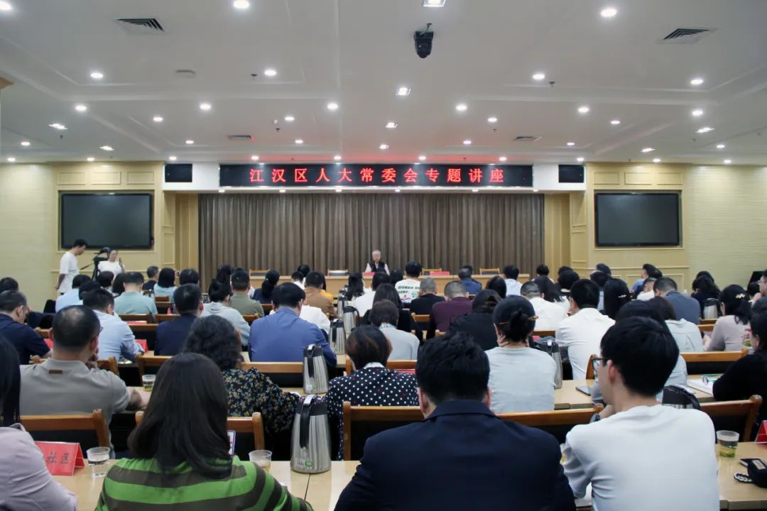 区委常委、区纪委书记、区监委主任毕盛,区人大常委会副主任刘惠平、洪涟、刘久利、杨俊、李虹,区政府副区长余建清、黄万能、张隽波,区人大常委会委员、机关全体干部,区人大常委会各街道(开发区)工委专职主任(副主任)、联络员,部分区人大代表,区政府有关部门主要负责人,中国银行江汉支行、新华街道江北社区部分党员干部参加了专题讲座。
