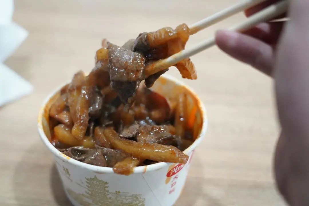 “每次吃他们家的火土肝,都让我感受到很强的烟火气,这个味道也别具一格,别的地方品尝不到这一口。”廖先生闻了闻碗里的美食,立马就大快朵颐起来。