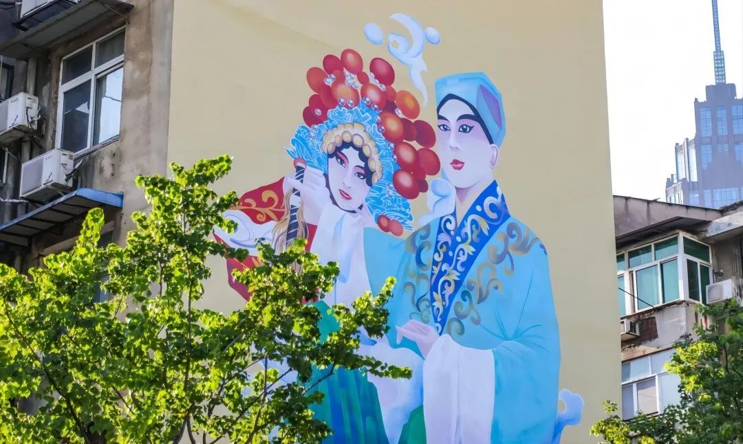 武汉戏码头文化街,以北湖正街特有的戏曲文化为主题,将汉剧、京剧及街区商业元素融入其中,邀请高水平设计团队进行方案设计,统筹街头博物馆打造、特色墙面喷绘、慢行交通网络构建、绿地与宅间隙地串联、绿化景观建设、公共服务设施完善等内容。通过塑造特色优美的地标式城市街区形态、创建舒适便捷的小区环境、构建秩序井然沉浸式逛游空间等形式,对北湖路、北湖正街及环保社区进行改造,打造“推窗就见绿、抬脚即进园”的公共生活空间,切实提升社区居民群众的获得感和幸福感。