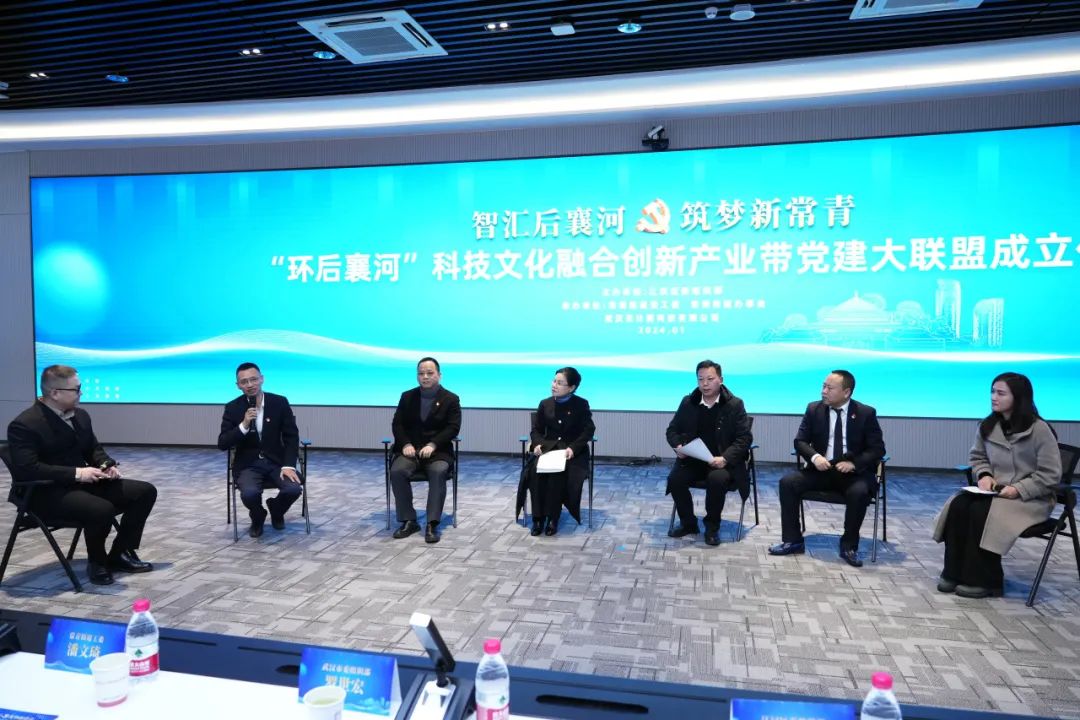 ,据介绍,“环后襄河”科技文化融合创新产业带党建大联盟由江汉区委组织部指导,常青街道党工委、办事处、武汉云计算科技有限公司牵头成立。
