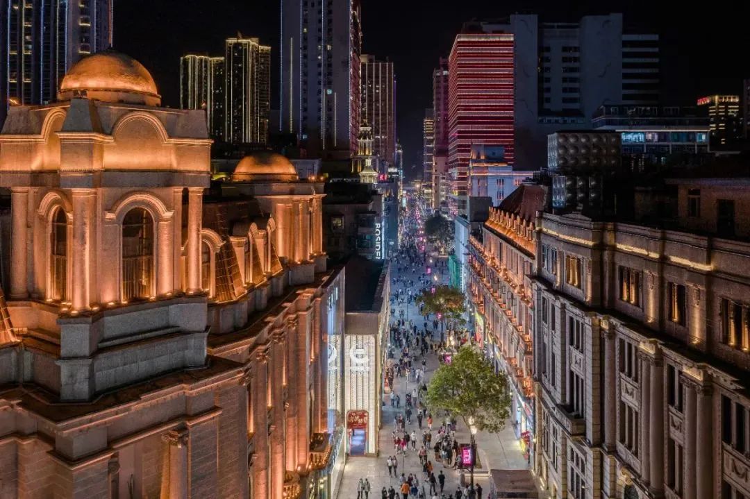 2020年江汉路步行街的改造回归,保留了武汉老建筑的风貌,引进年轻化的潮牌,时尚商铺霓虹闪耀,多家武汉老字号重放光彩,至此,江汉路一举摘得“天下第一步行街”的美誉。