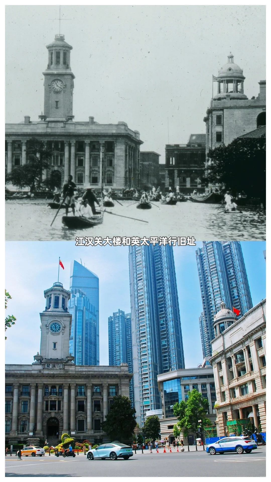 2021年王世赏重返江汉关在同一地点拍下照片,不禁感叹,“江汉关没变,还是那么美丽!江汉关又变了,发展越来越好!”