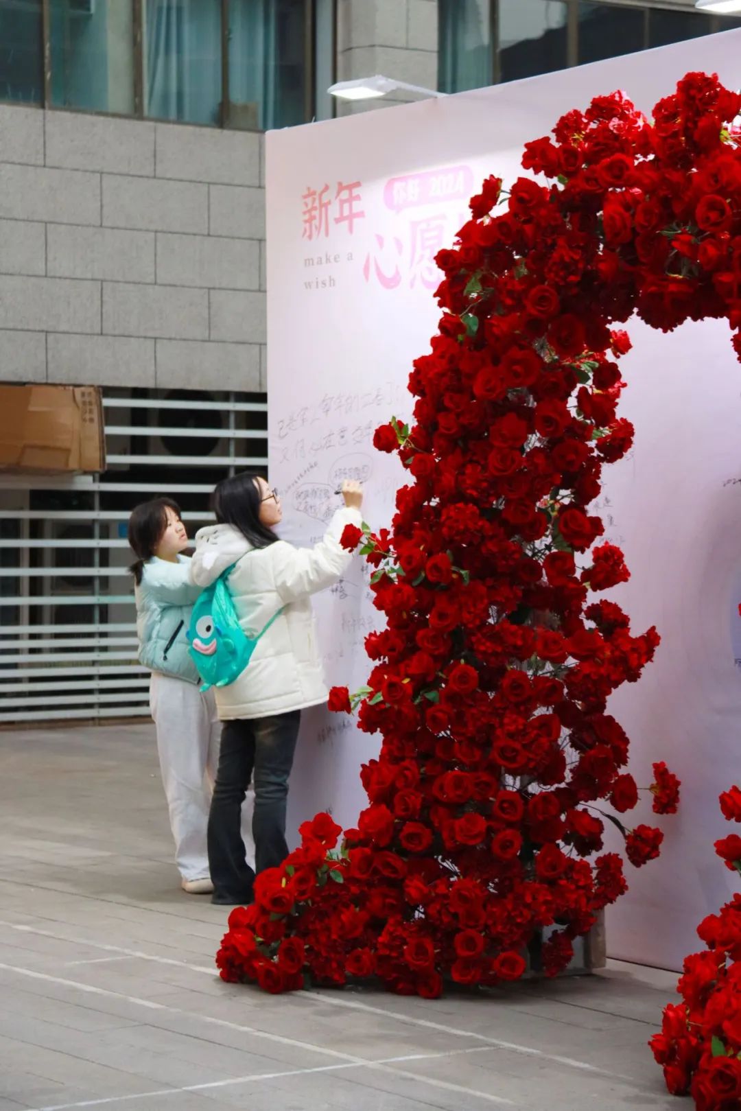 市民游客在新年心愿墙许愿