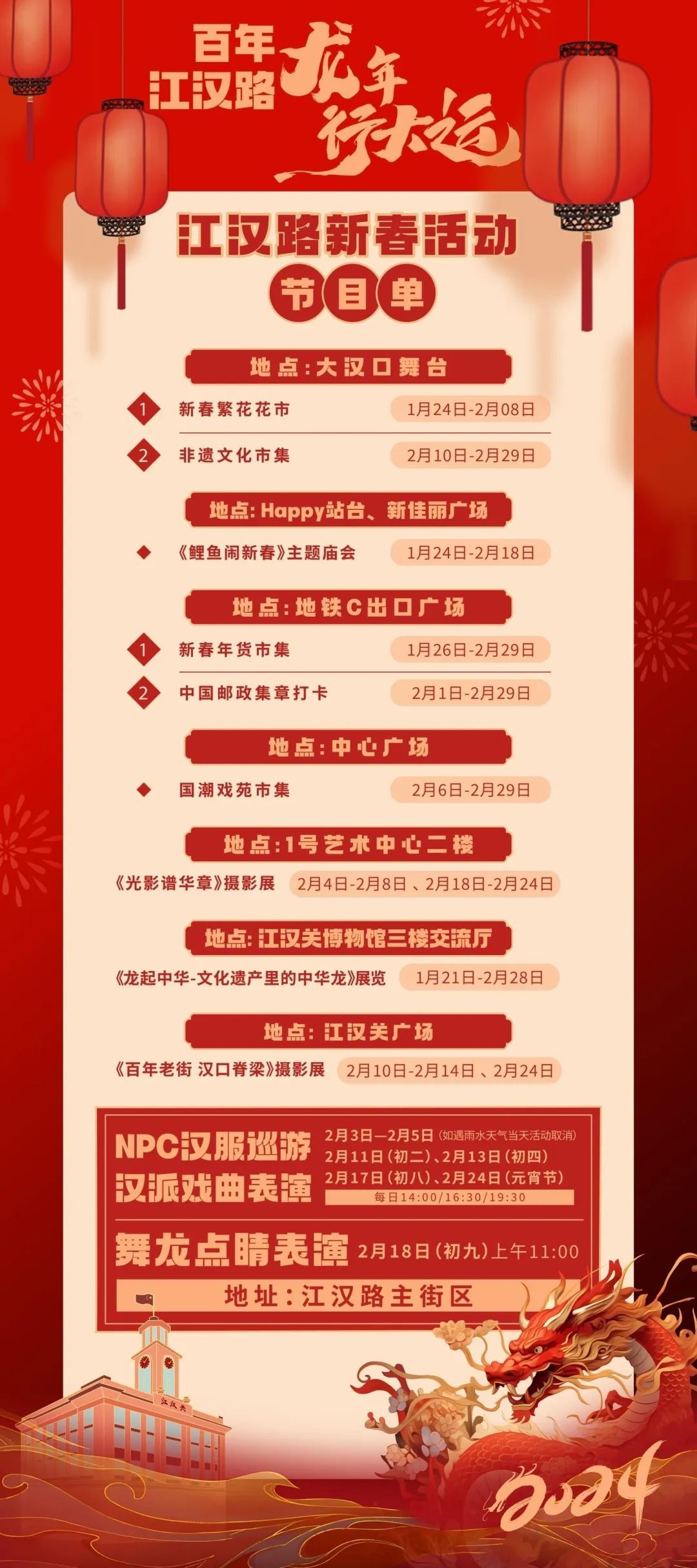 “百年江汉路,龙年行大运”活动节目单