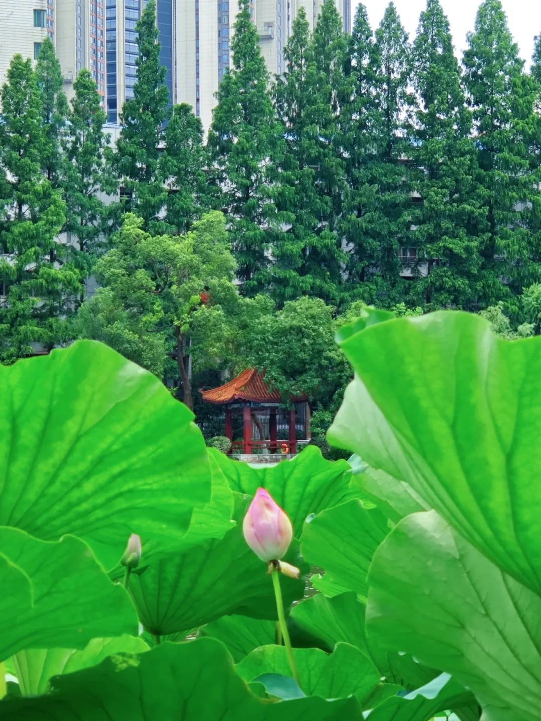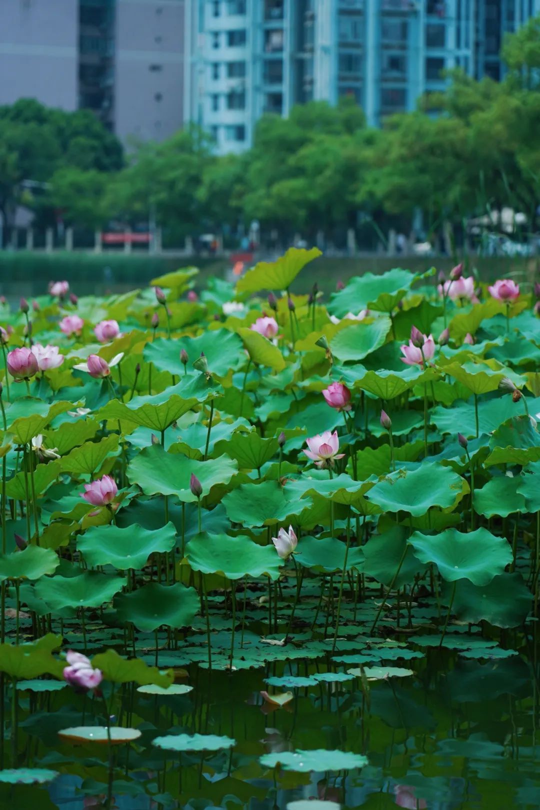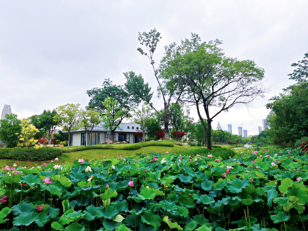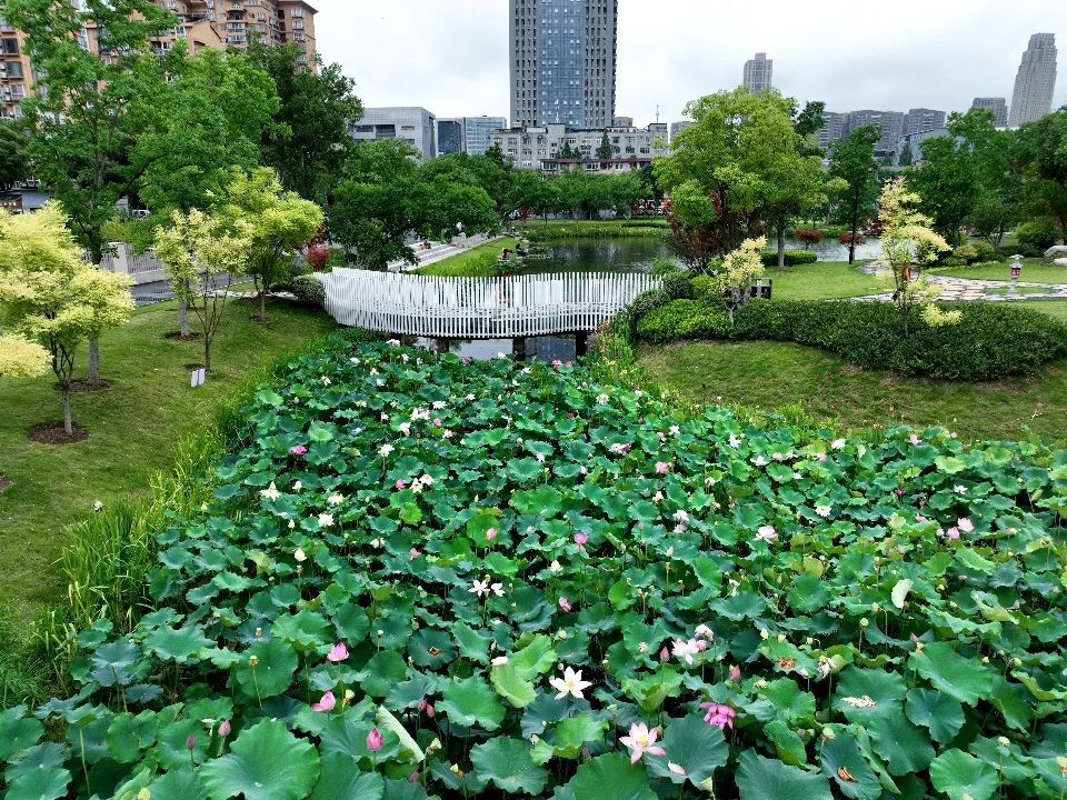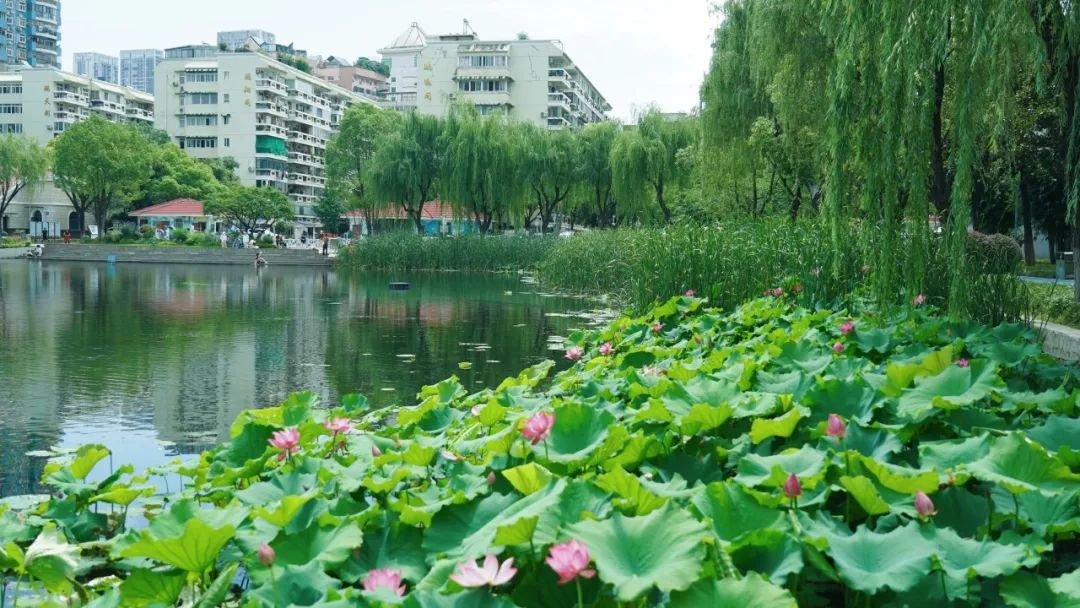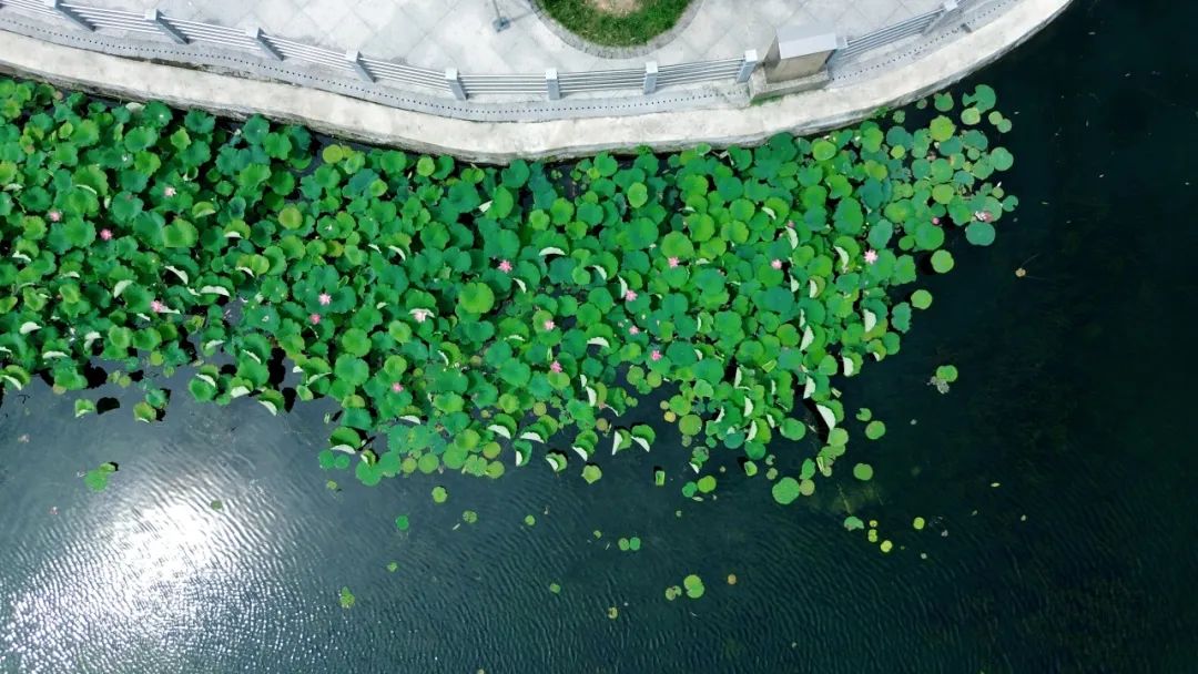 常青公园的荷花池如同一幅细腻而生动的画卷,在铁路线旁缓缓展开,画中的荷花写满了诗意。