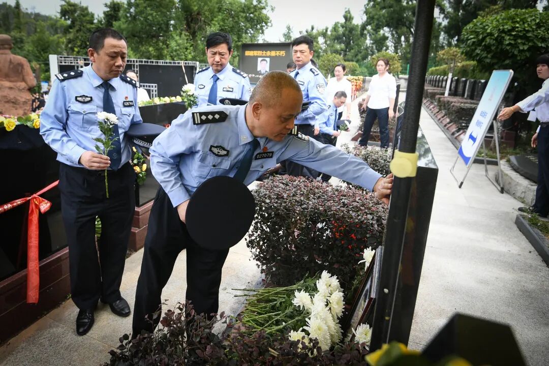 “邱建军同志的一生,始终对党忠诚、不负人民……”武汉市江汉区委书记李湛为烈士致祭文,他深情地回顾了邱建军烈士30年从警路上日日夜夜的坚守、惊心动魄的瞬间、为民服务的点滴,几度哽咽。