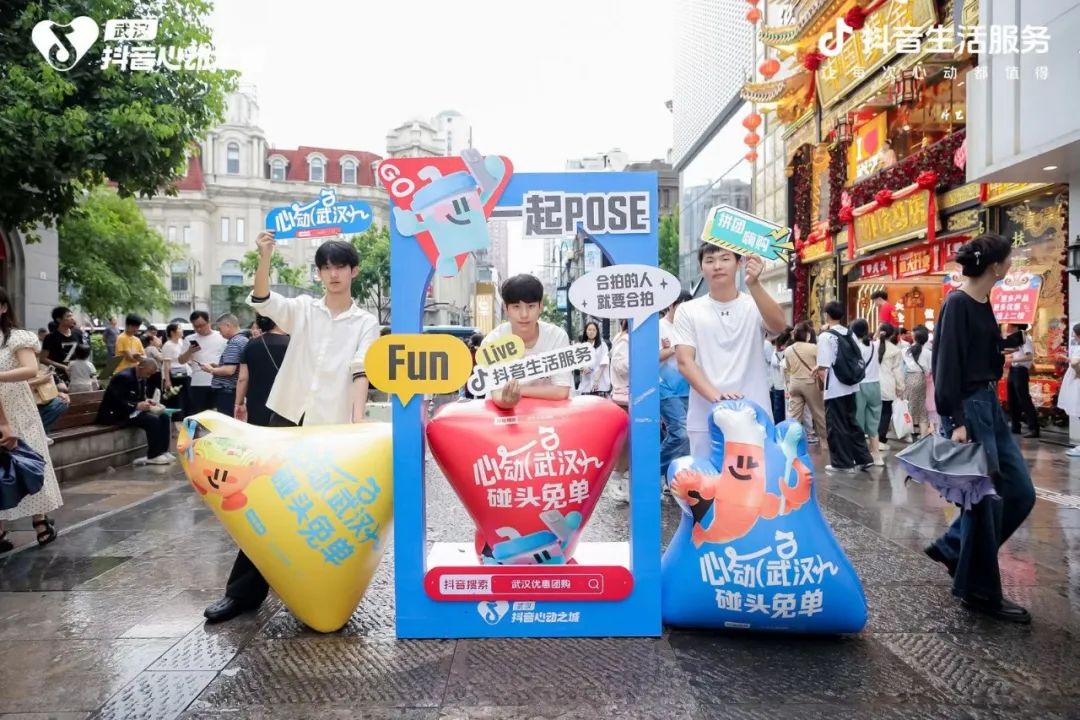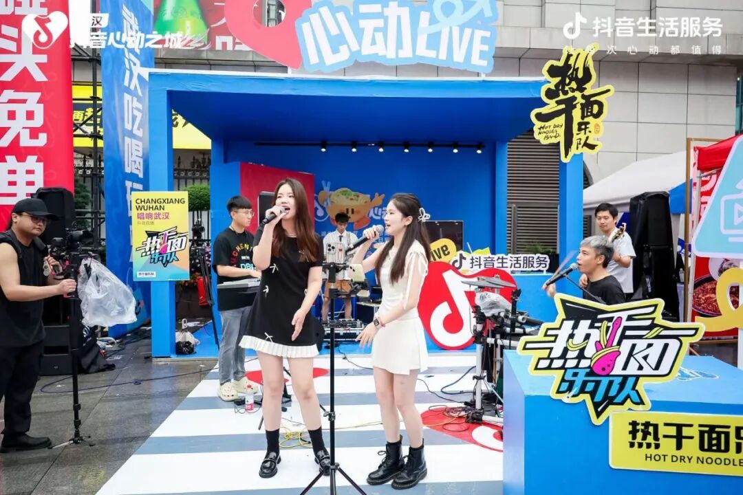 美团、抖音、饿了么三大平台,将直播间搬到江汉路步行街,线上直播和线下场景的同台竞演,为超过10万种类的货品做宣推。