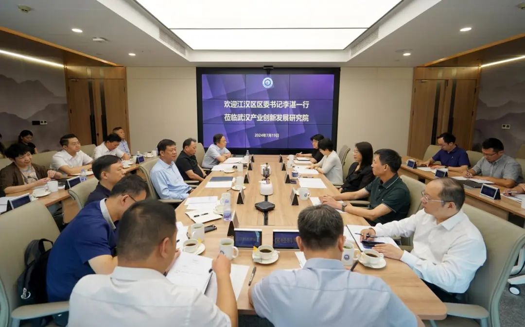 7月19日,江汉区委书记李湛带队拜访武汉产业创新发展研究院,与武汉产业创新发展研究院院长李锡玲开展座谈交流。