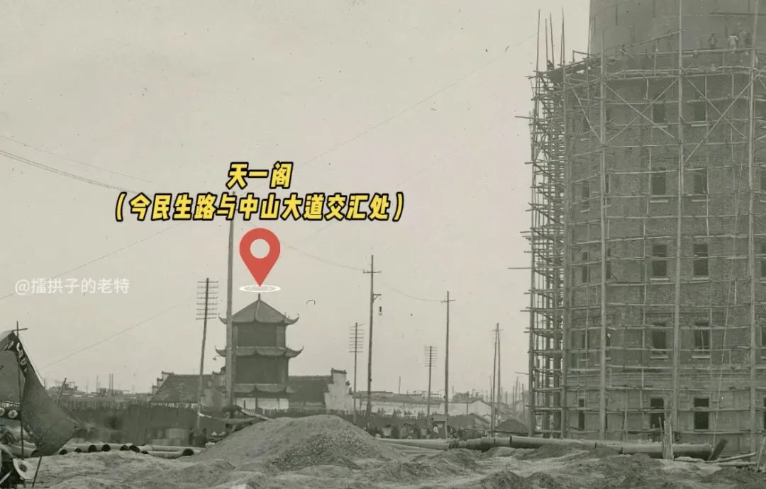 在由墙成路的后城马路边修建了汉口水塔。