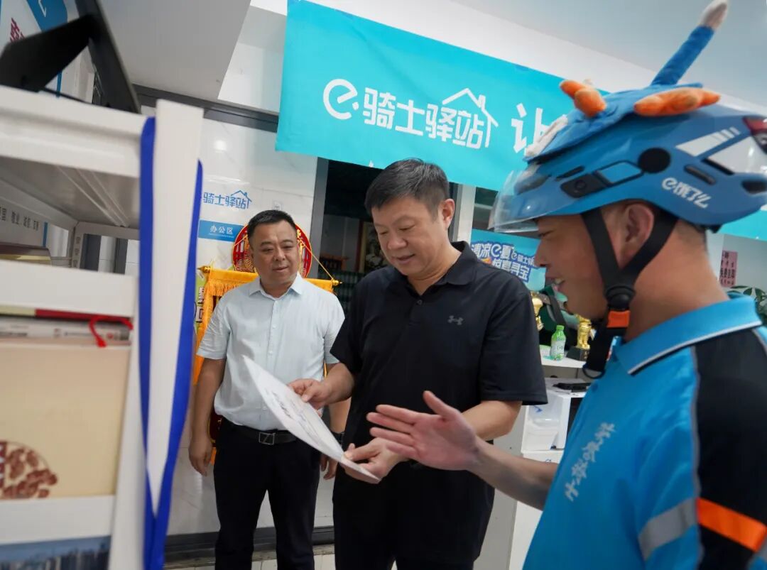 李湛一行先后前往江汉区区域性职工之家驿站和饿了么蓝骑士驿站(红旗渠路店),走访慰问外卖和快递人员等新业态、新就业群体代表,查看户外工作者驿站建设和使用情况,为新就业群体代表送上慰问物资,并与相关人员展开座谈。