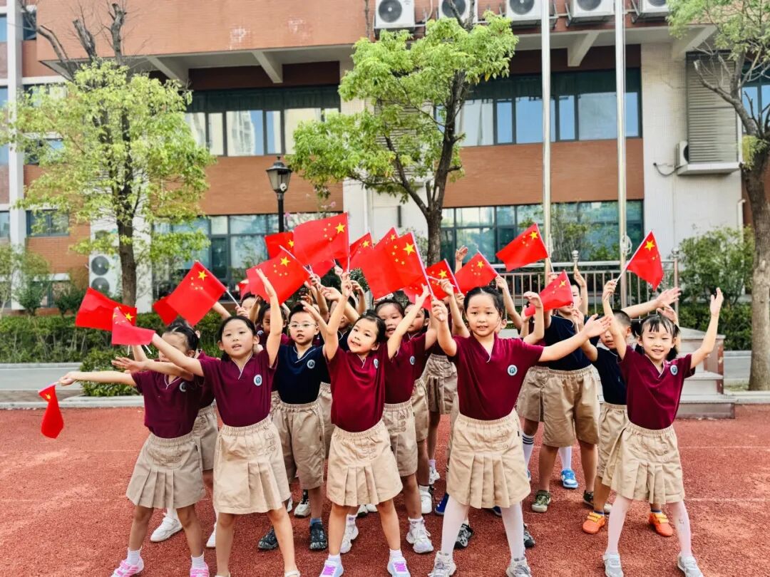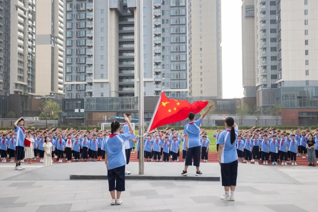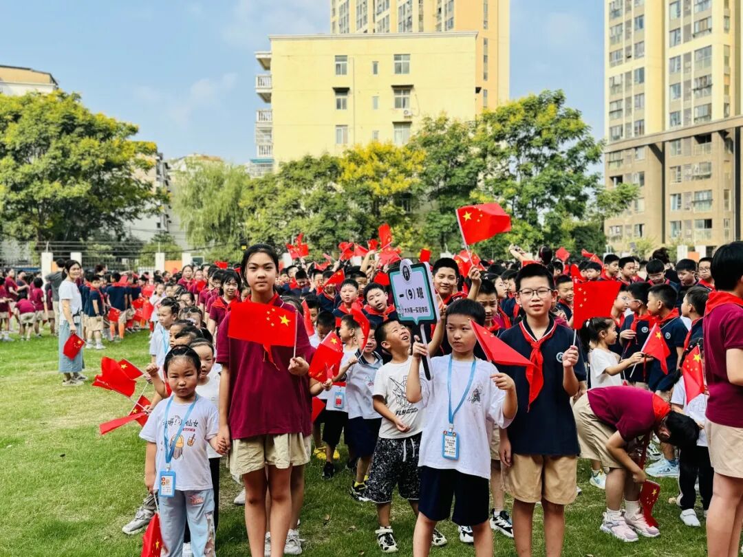 9月2日,江汉区大兴第一实验学校金雅校区送给全校2000余名学生一人一面国旗,作为新学期开学的特别礼物。升旗仪式上,全校齐唱国歌。随后,孩子们伴随歌曲《大中国》跳起手势舞、挥舞国旗。